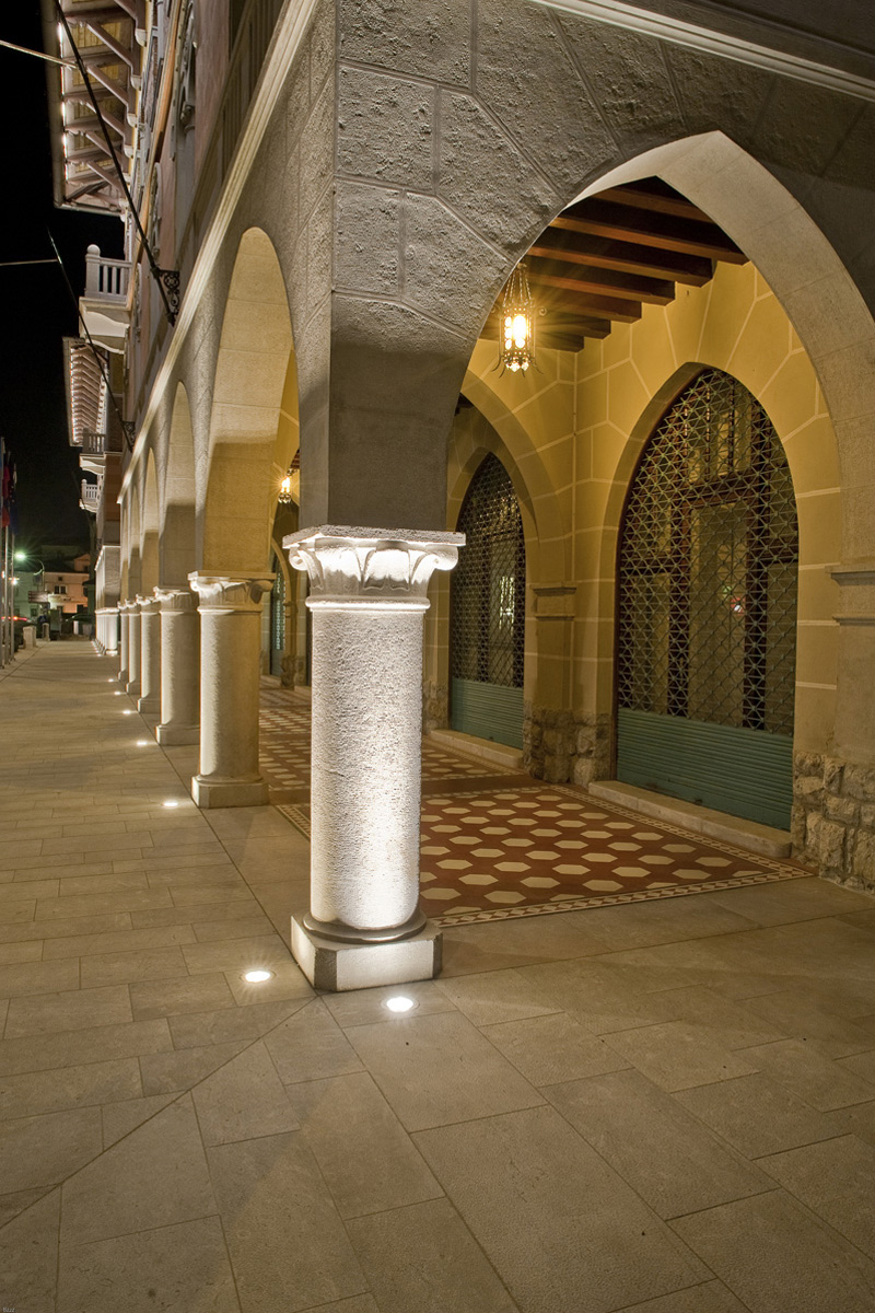 Osvetlitev pročelja in zunanjosti hiše Občine Ilirska Bistica, 2010 Projekt prenove: Leon Belušič Projekt osvetlitve: Marko Strle in Edi Zupan Foto: Blaž Zupančič