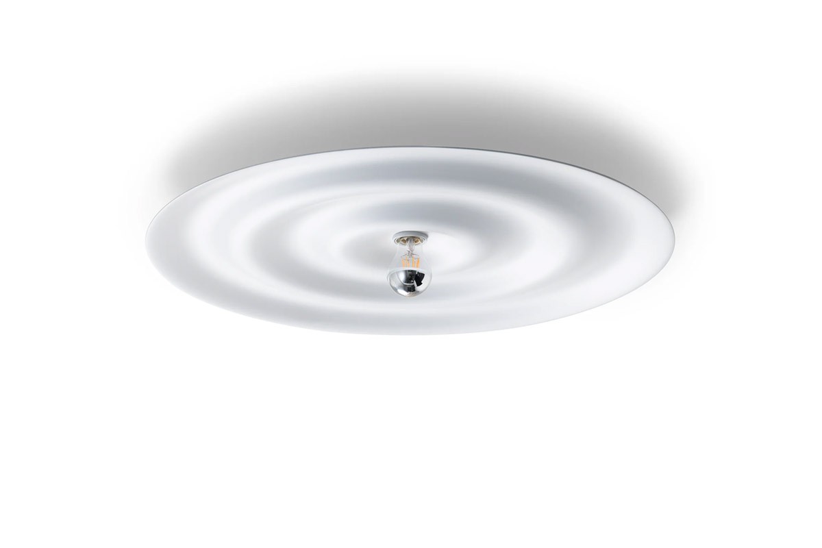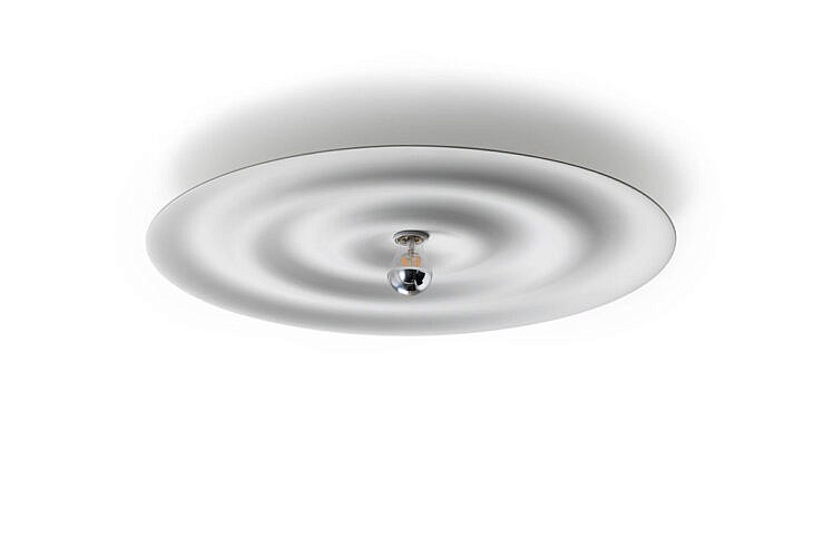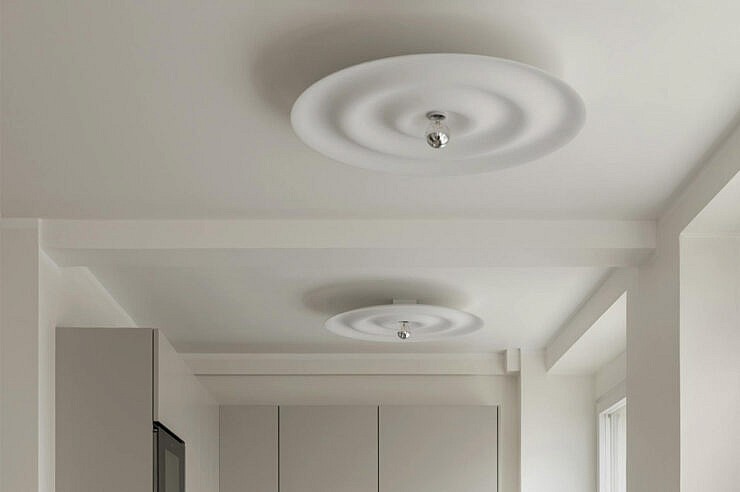 Inspired by the gentle curve of a sine wave, Alma’s softly undulating forms create a subtle play of light and shadow. Discreet yet expressive, its sculptural presence adds depth and rhythm to a space without dominating it. This slim, ceiling-mounted version adds sculptural depth while taking up minimal visual space – ideal for low ceilings.