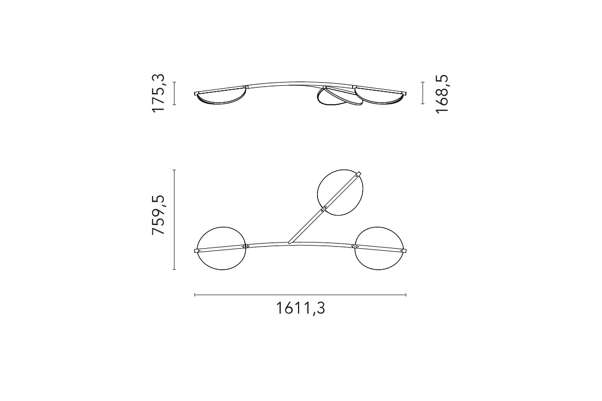 Viseča svetilka z razpršeno svetlobo, ki je na voljo v linearni in organski sestavi. Cevasta struktura iz aluminija in CNC aluminijastih terminalov z mat ali metaliziranim zaključkom. Vgrajena tehnologija Edge Lighting. Svetlobne enote je mogoče obračati v korakih po 60° znotraj strukture, da spremenite smer oddane svetlobe. Kovinska rozeta z mat belim zaključkom. Integrirana elektronika v stropni rozeti omogoča uporabo različnih sistemov zatemnitve: 1-10V, DALI, push-dim ali potenciometer. Uporabna dolžina kabla 3 m.