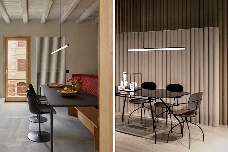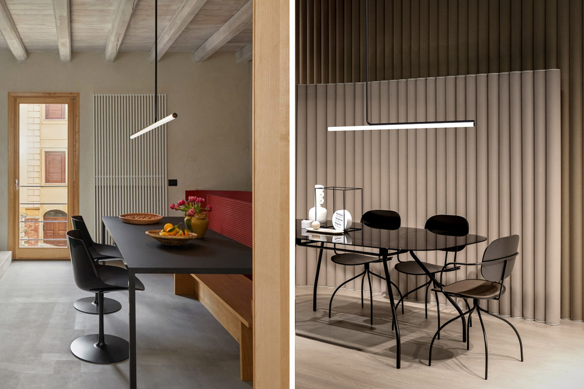 Ta sistem razsvetljave je na voljo v štirih prednastavljenih dolžinah, od 121 do 365 cm. Podaljški dolžine 41 in 61 cm vam omogočajo, da določite višino, s katere jih boste obesili. Tako lahko prilagodite njihovo oddaljenost od stropa in ustvarite vizualno neprekinjene kompozicije.