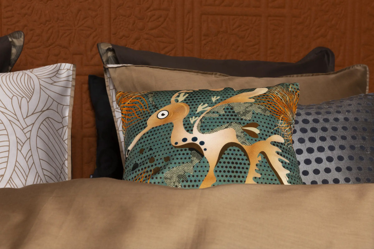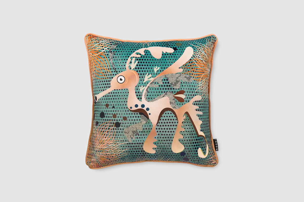 Dekorativna blazina Blooming Seadragon je del kolekcije blazin Extinct Animal in doda udoben in oseben pridih vašemu kavču, stolu, postelji, podlogi za jogo – čemur koli želite. Prevleka za blazino ima na sprednji strani sodobno grafiko Cvetočega morskega zmaja, na hrbtni strani pa motiv, ki temelji na njegovem videzu. Izdelana je iz mehke in gladke vrhunske žametne tkanine ter je zaključena z vrvico v kontrastni barvi in zadrgo z logotipom Moooi kot čudovitim detajlom. Vložek se prodaja ločeno.