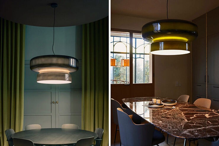Rezultat je vznemirljiv, organski, prosojen profil, ki združuje dva volumna v eno samo obliko. To omogoča veliko senčilo v različnih barvah, ki ne moti notranjosti, ki je vedno bela, kar zagotavlja brezhibno osvetlitev brez razlitja barv. Na voljo je v jantarni, zeleni in kot novost v dimljeni barvi. Slednja barva ponuja manj kontrasta, z bolj diskretnim monokromatskim videzom, kar omogoča, da je oblika protagonistka in ne odtenek.