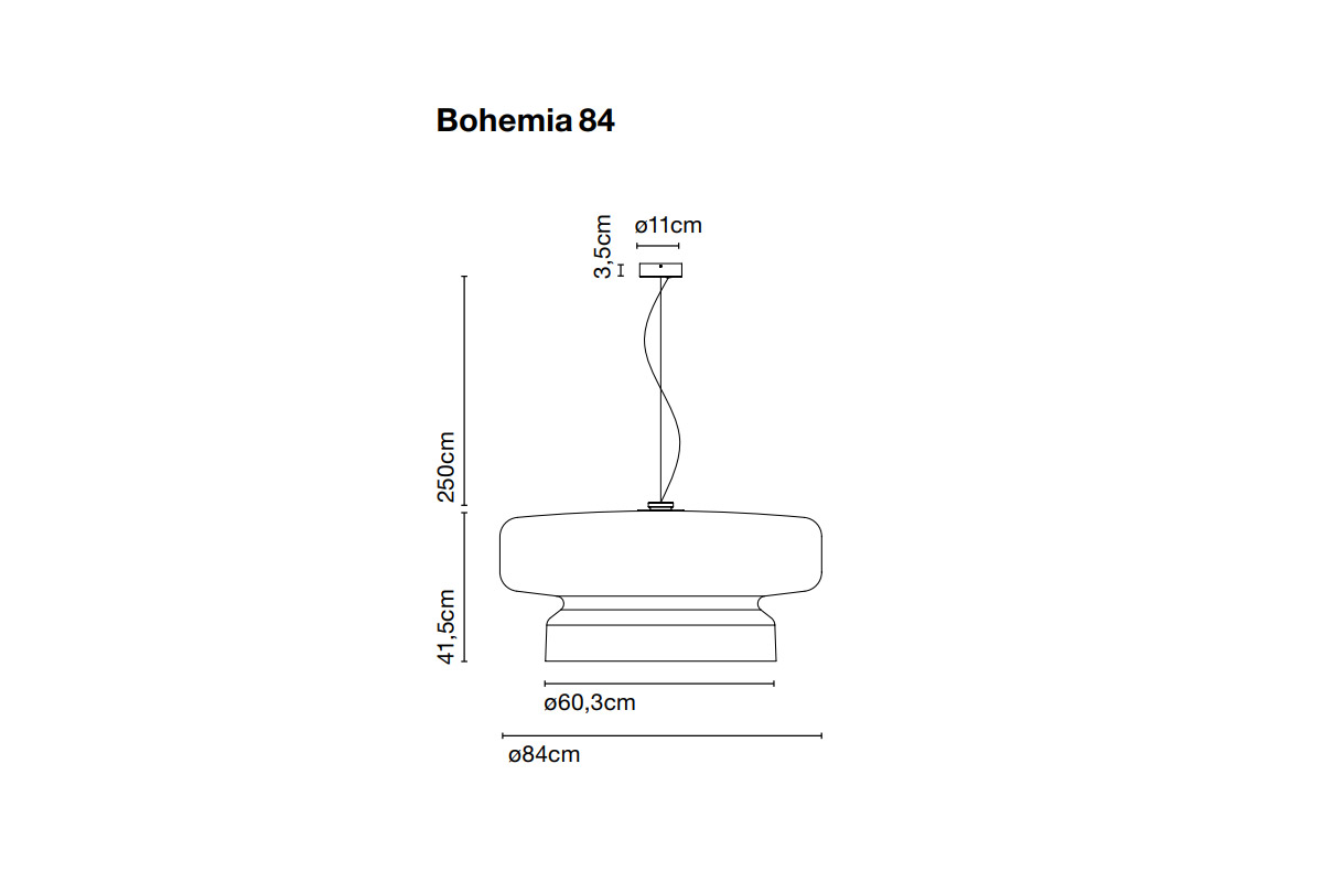 Ko je Bohemia prižgana, sveti belo svetlobo navzdol, hkrati pa poudari senco s subtilnimi odtenki in sencami. Ta preplet sence in svetlobe definira oba volumna. Bohemia je svetla in presenetljiva, z izjemno svetlobo, ki želi presenetiti vse gledalce.