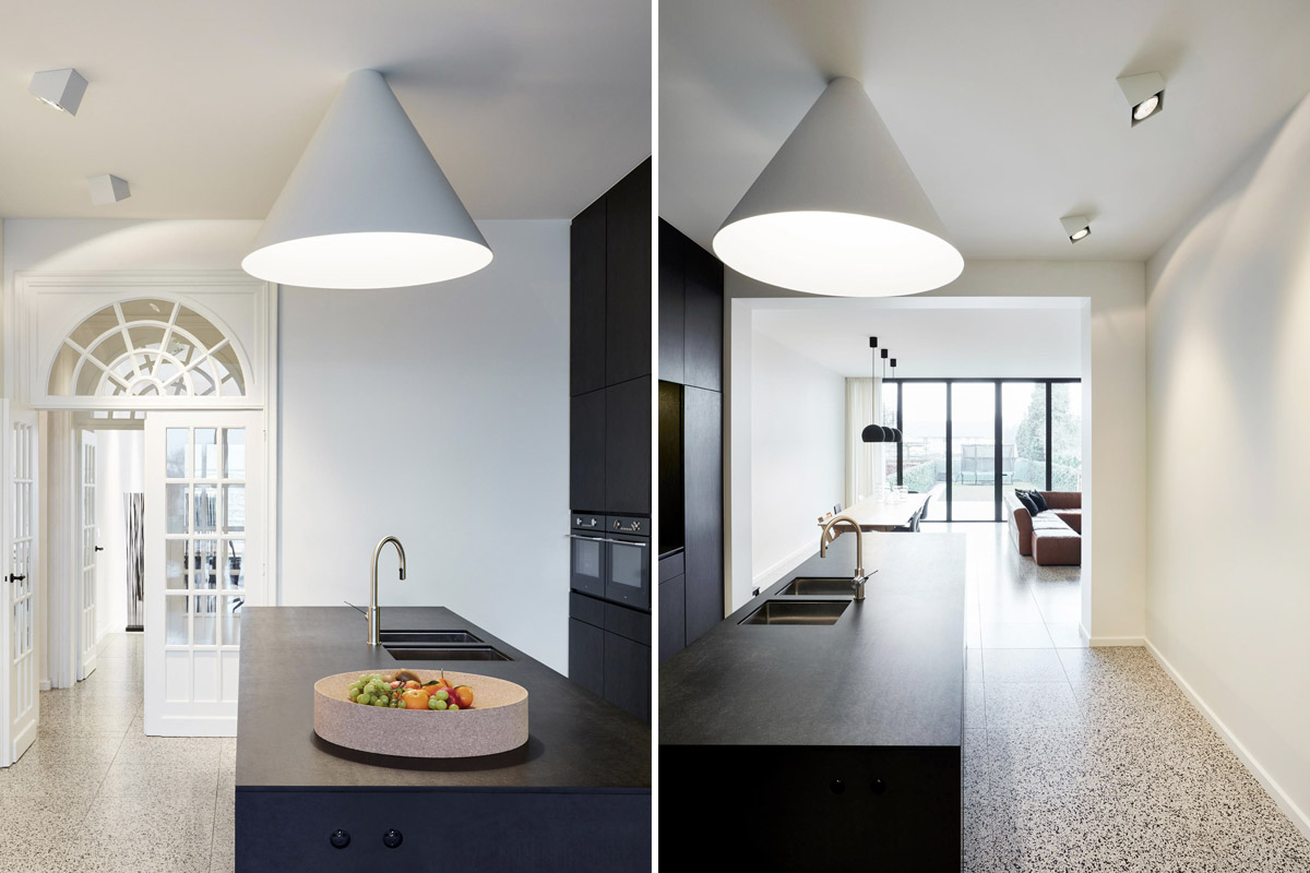 Oblikovno zanimivo stropno svetilo z različnimi svetlobnimi viri. Možnost dodatnega senčila iz opalnega pleksija.