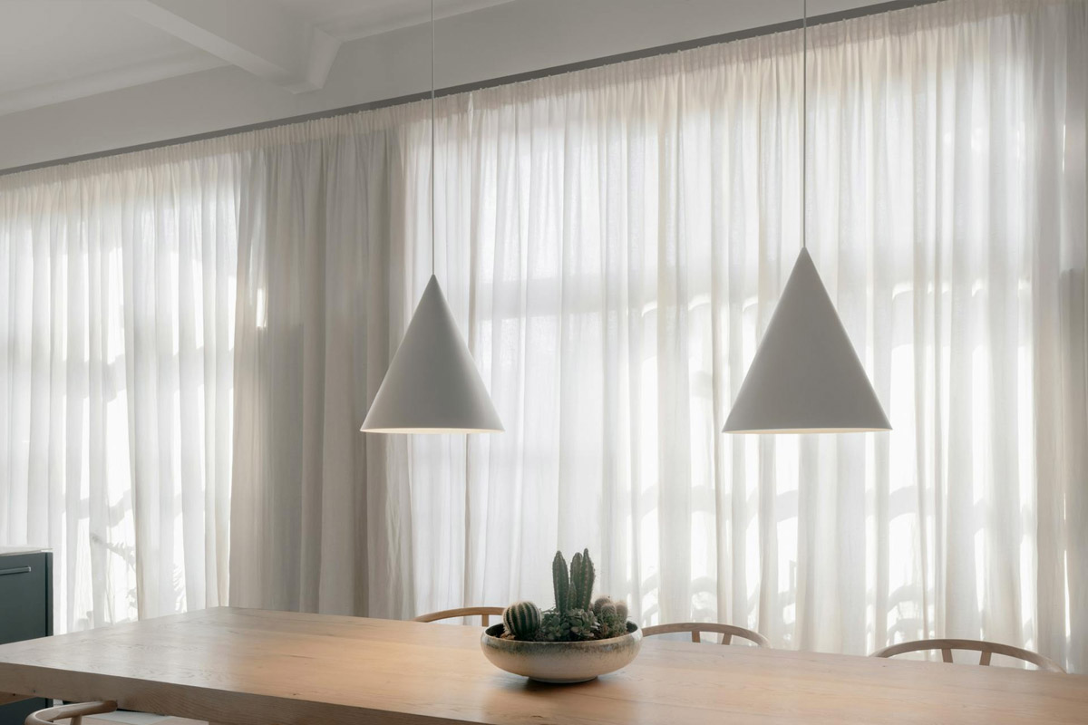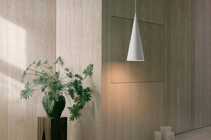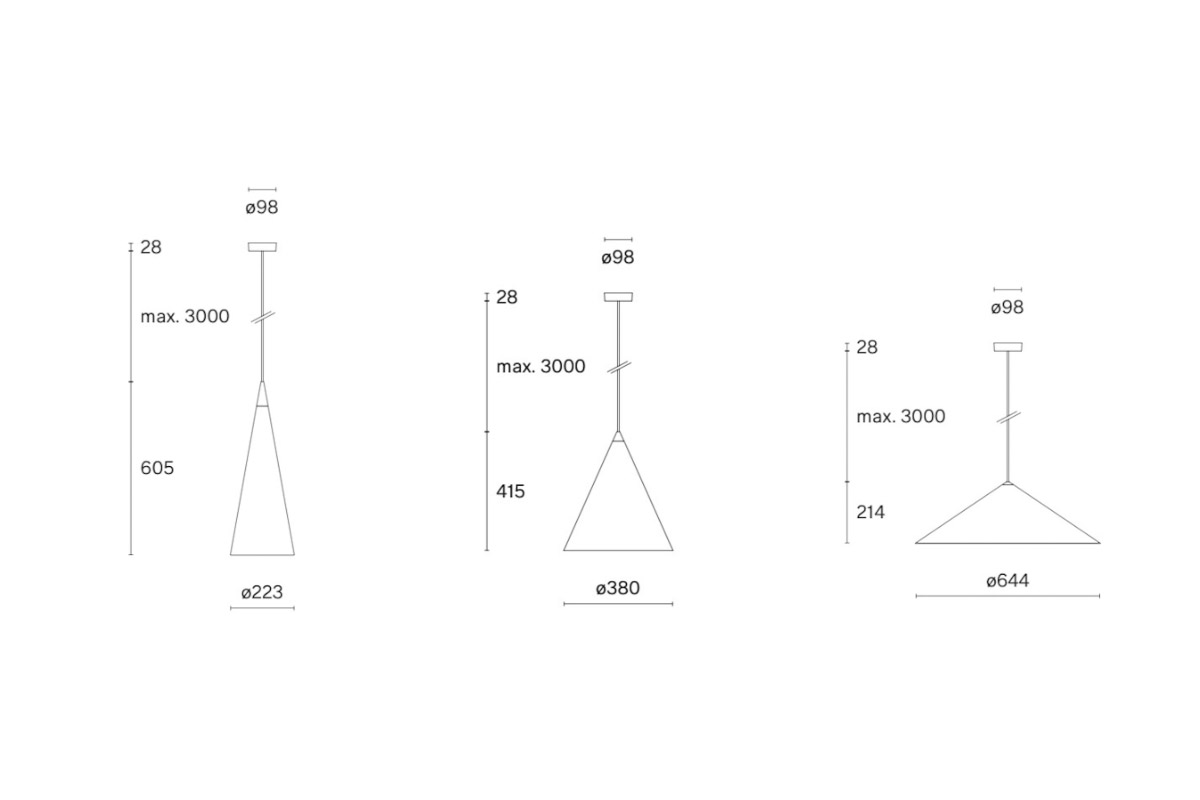 Cone je raziskovanje ostre geometrije in izraznega merila. Kolekcija, ki obsega tri različne velikosti in stožčaste oblike, se igrivo giblje med kompaktnimi poudarki in prevelikimi, presenetljivimi izjavami – hkrati pa oblikuje svetlobo in prostor z jasnostjo in prisotnostjo. Cone Extra small je najkompaktnejša različica kolekcije, ki predstavlja svojo ostro geometrijo v veliko manjšem merilu. Čudovito deluje samostojno kot samostojni poudarek ali v skupinah v ustvarjalnih aranžmajih.