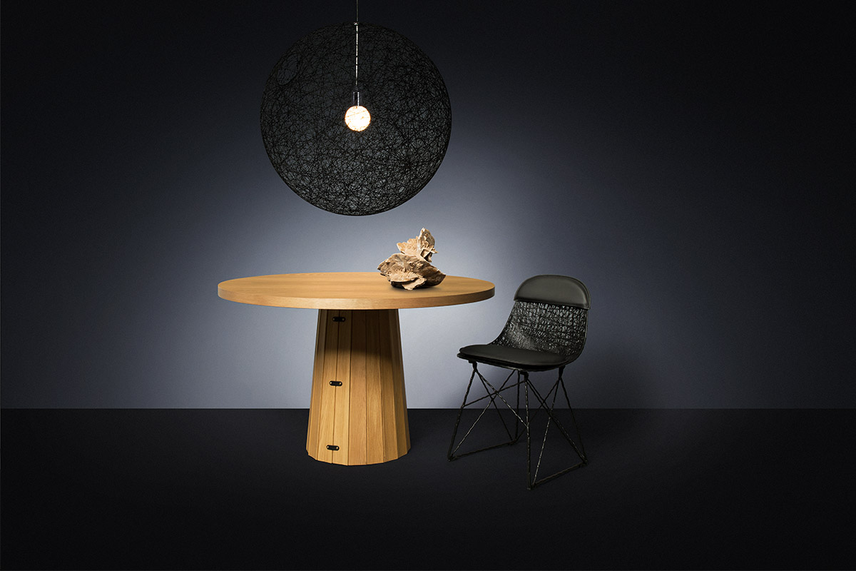 Container table Bodhi, ki jo je zasnoval Marcel Wanders, ima klasično podnožje Container mize, vendar z lesenim ovojem. Lesene letvice dodajo dizajnu mehkobo, ne da bi pri tem izgubile na stabilnosti. Podnožje mize napolnite s peskom ali kamenčki, da dodate trdnost in ustvarite trdno podlago. Container table Bodhi je trdna in umirjena podlaga, okoli katere gradite svoj dom. Container table Bodhi lahko sprejme do deset oseb. Ali imate raje drugačno barvo, material ali velikost? Konfigurirajte Container table Bodhi po svojih željah s spletnim konfiguratorjem.