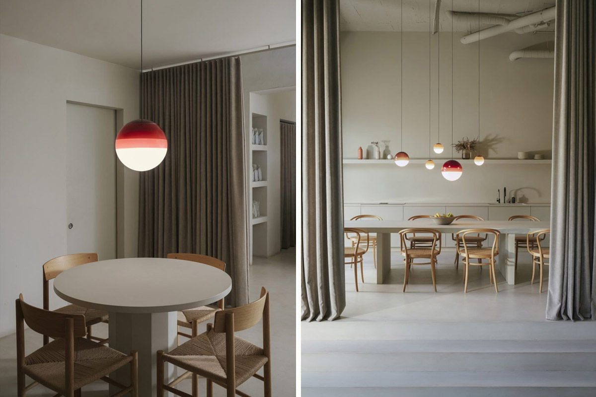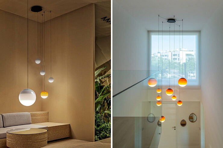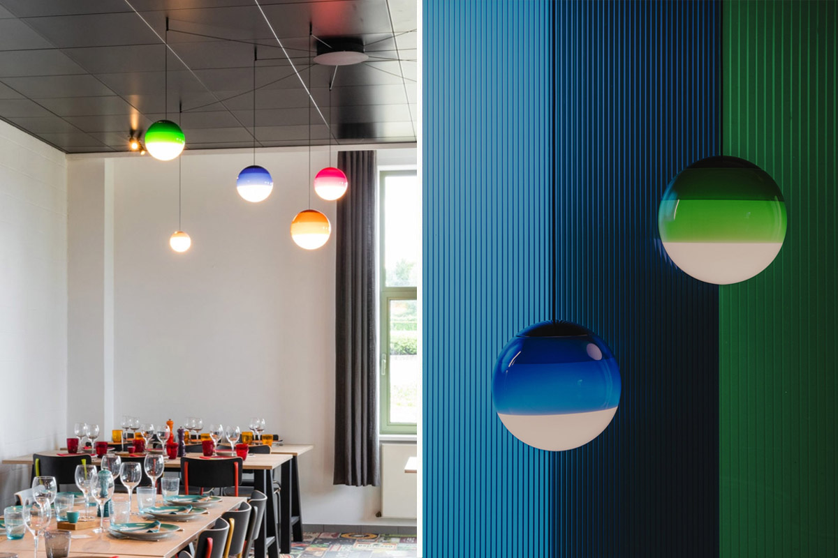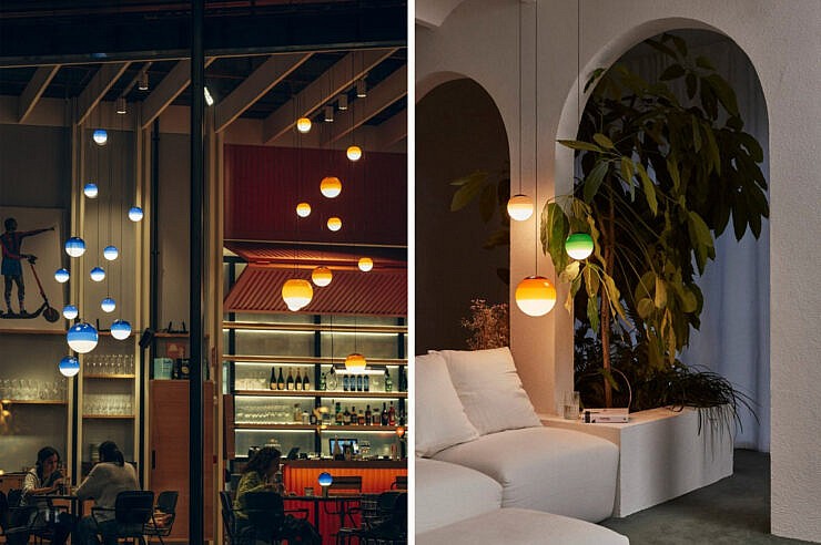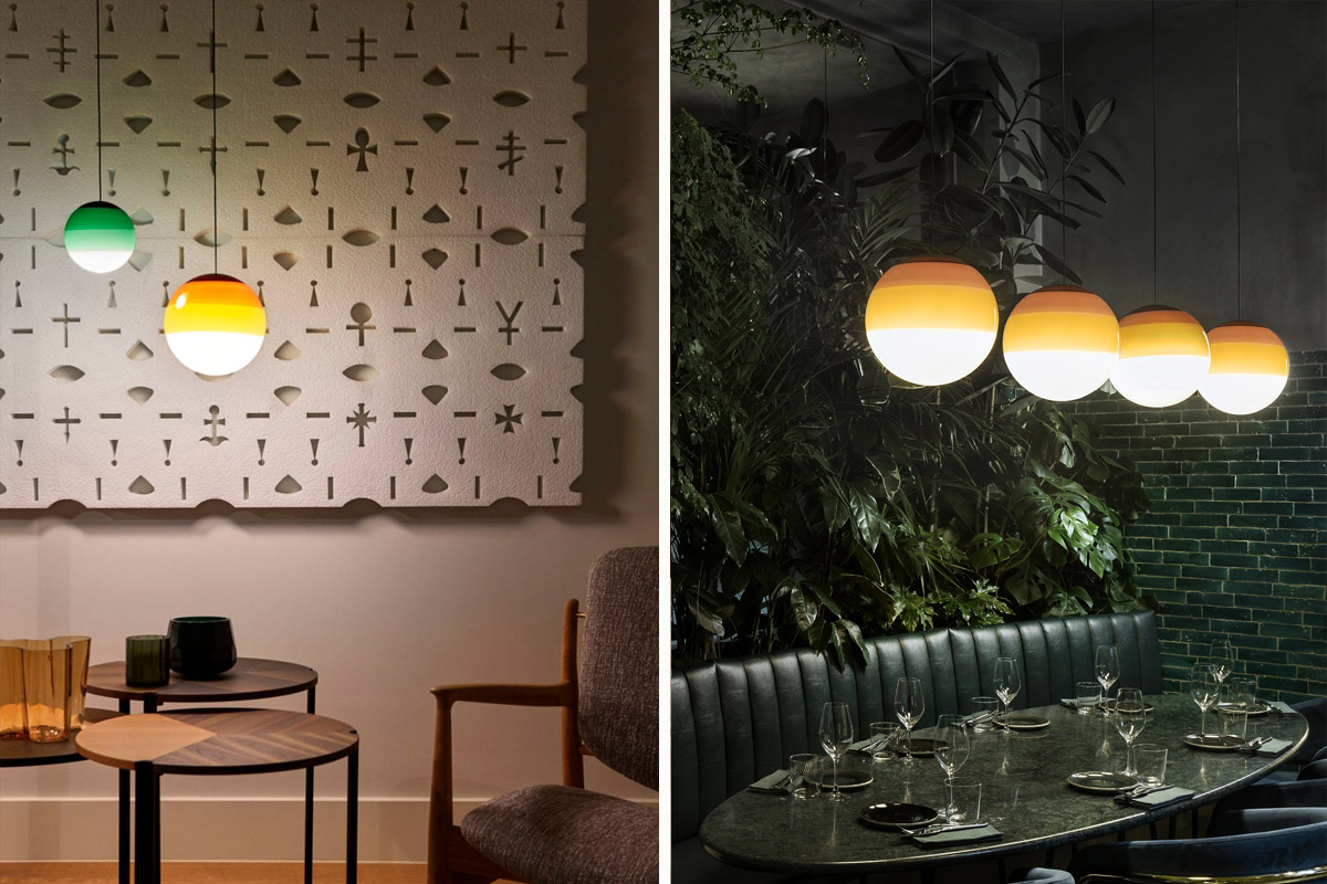 Viseča različica Dipping Light se znebi vseh nepotrebnih elementov in ohrani le bistveno: barva je v središču pozornosti. Pri uporabi več svetilk za ustvarjanje kompozicije je vizualni učinek očarljiv. Na voljo je v štirih različnih premerih: 12 cm, 20 cm, 30 cm in 40 cm. Ko je ta večja žarnica vklopljena, preprosto zahteva pozornost: barva je sporočilo. Njena velikost izžareva toliko moči in vizualne estetike, da lahko zapolni kateri koli prostor in ga potopi v barvo.