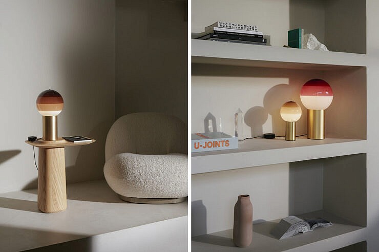 Poleg svoje funkcije svetilke si Dipping luč prizadeva vznemirjati. Ko je prižgana, njeni različni odtenki barve presejejo svetlobo in ustvarjajo čaroben ambientalni učinek. Ko je ugasnjena, je njena barvna steklena krogla predmet, nabit z lepoto, in privlačen oblikovalski kos za polico, nočno omarico ali mizo. Svetilka Dipping Light slavi barve, hkrati pa še naprej osvetljuje s tremi novimi, vsestranskimi odtenki – kremno, čokoladno in bordo. Ti novi odtenki ponujajo bolj umirjeno in postopno kromatično paleto, ki ohranja bistvo svetilke Dipping Light: kremna barva izžareva toplino, čokoladna se zliva z manj nasičenimi vzorci, bordo pa ponuja tiho prefinjenost. Te nove, harmonične barve se dopolnjujejo med seboj in z obstoječo kolekcijo, njihova vizualna skladnost pa jih naredi vsestransko izbiro za vsak projekt. Več o svetilu...