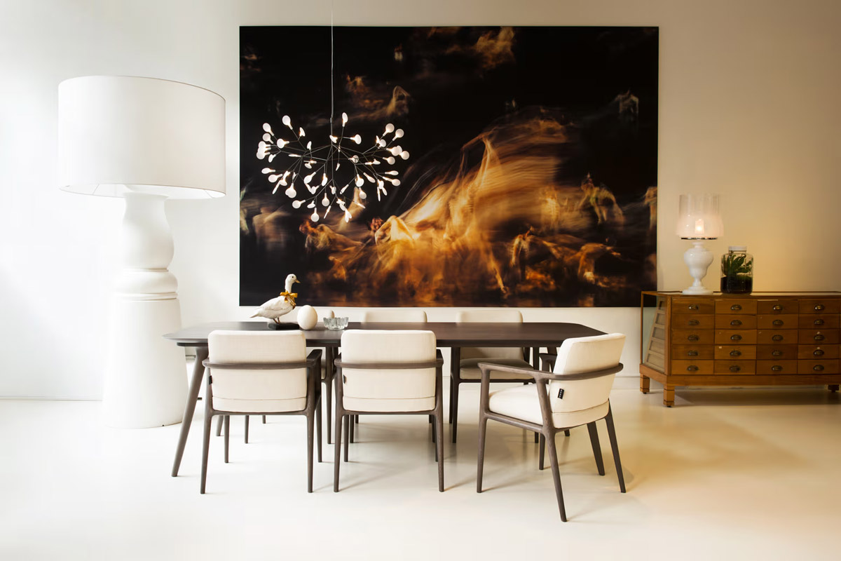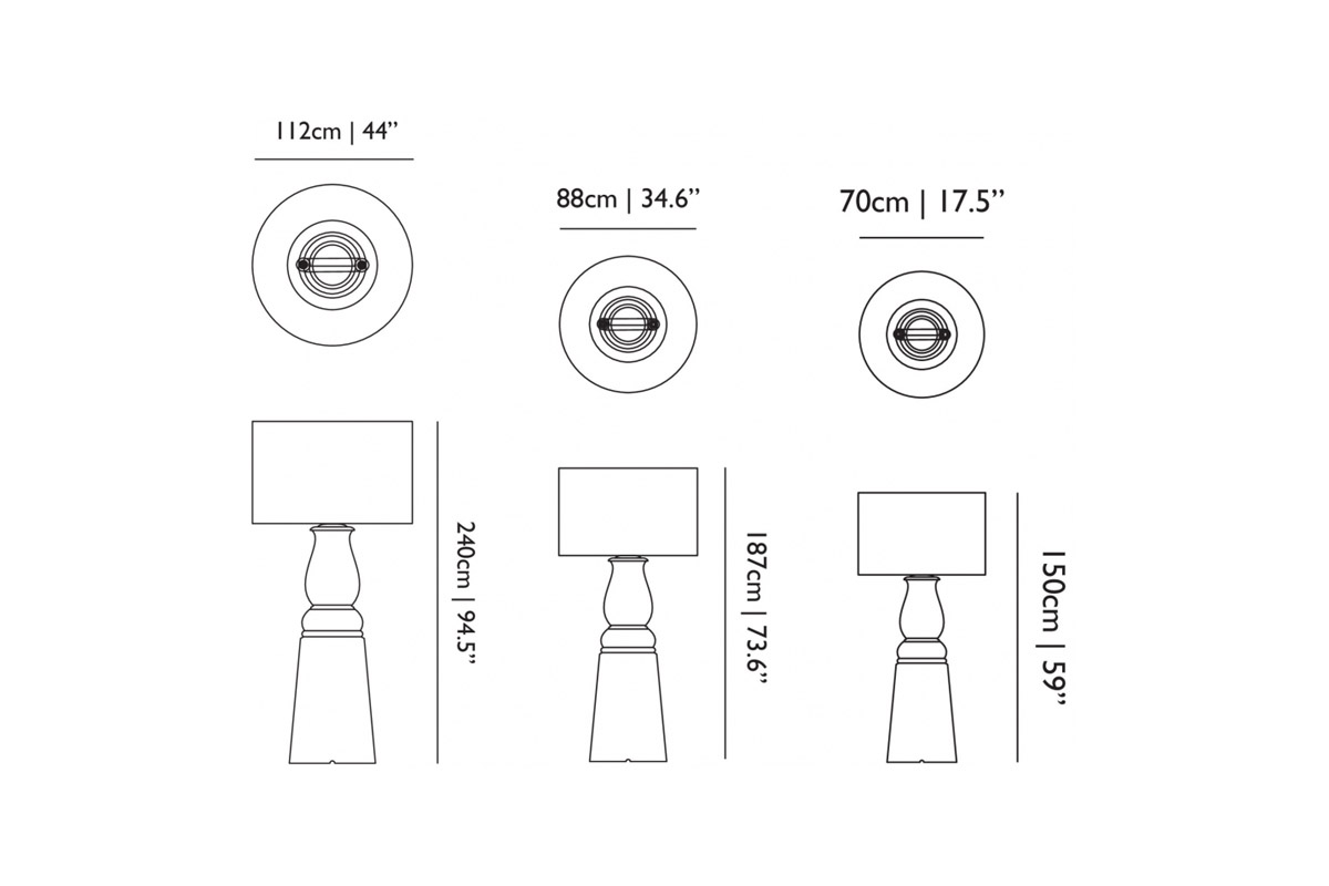Ime Farooo je navdihnjeno z italijansko besedo za svetilnik in njegovim intenzivnim svetlobnim snopom, ki služi kot vodilo ladjam ob nevarnih obalah. Ta svetilka, ki jo zaznamuje vijugasto, okrasno telo in sodoben senčnik, je na voljo v treh impozantnih dimenzijah in z izbiro več elegantnih barv. Naj vas svetlobni snop Farooo popelje na varno in srečno lebdite proti njegovemu mehkemu, mirnemu sijaju.