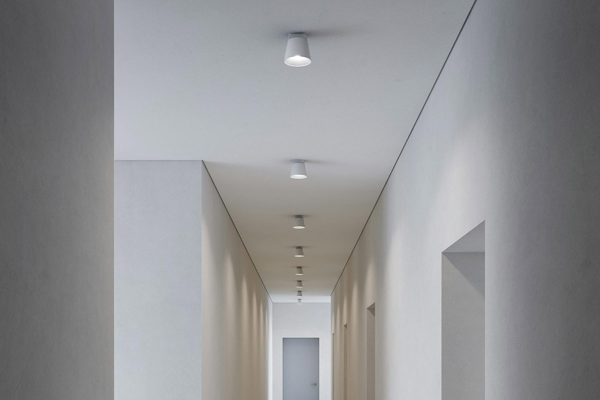 Focal, zgrajen na pametni združitvi kroga in kvadrata, poudarja svojo okolico in jo bogati z obliko, ki je hkrati subtilna in zanimiva. Zaradi svoje vsestranskosti in preproste namestitve se lahko brez težav prilagodi najrazličnejšim prostorom in estetiki. Ta različica ima stropni nosilec s svetilko, ki se enostavno zaskoči.