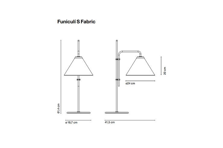 Funiculí je ena najbolj značilnih svetilk znamke Marset. Njena zasnova obstaja že dolgo, a kljub temu ostaja sodoben in funkcionalen. Svetloba je lahko neposredna ali posredna, višino svetlobe pa je mogoče nastaviti s kompletom sponk.