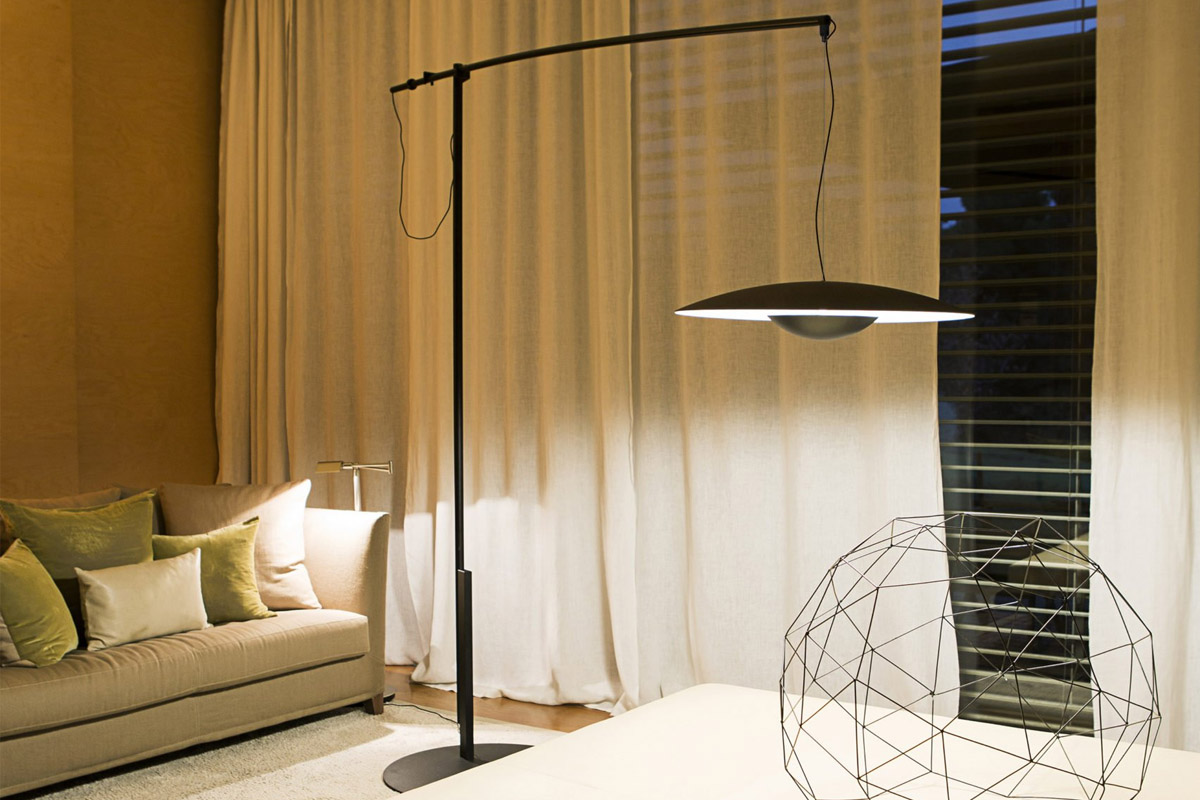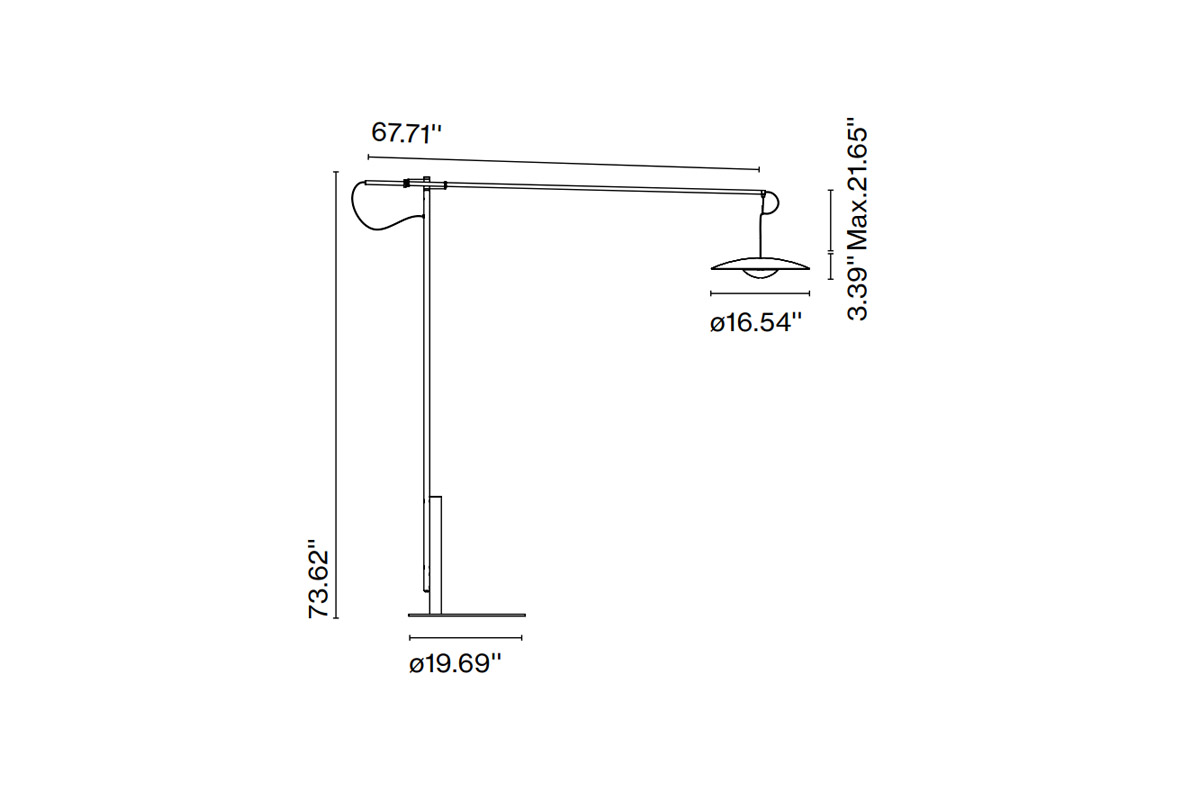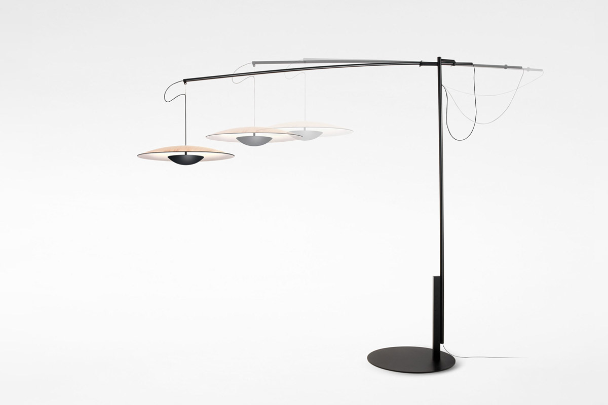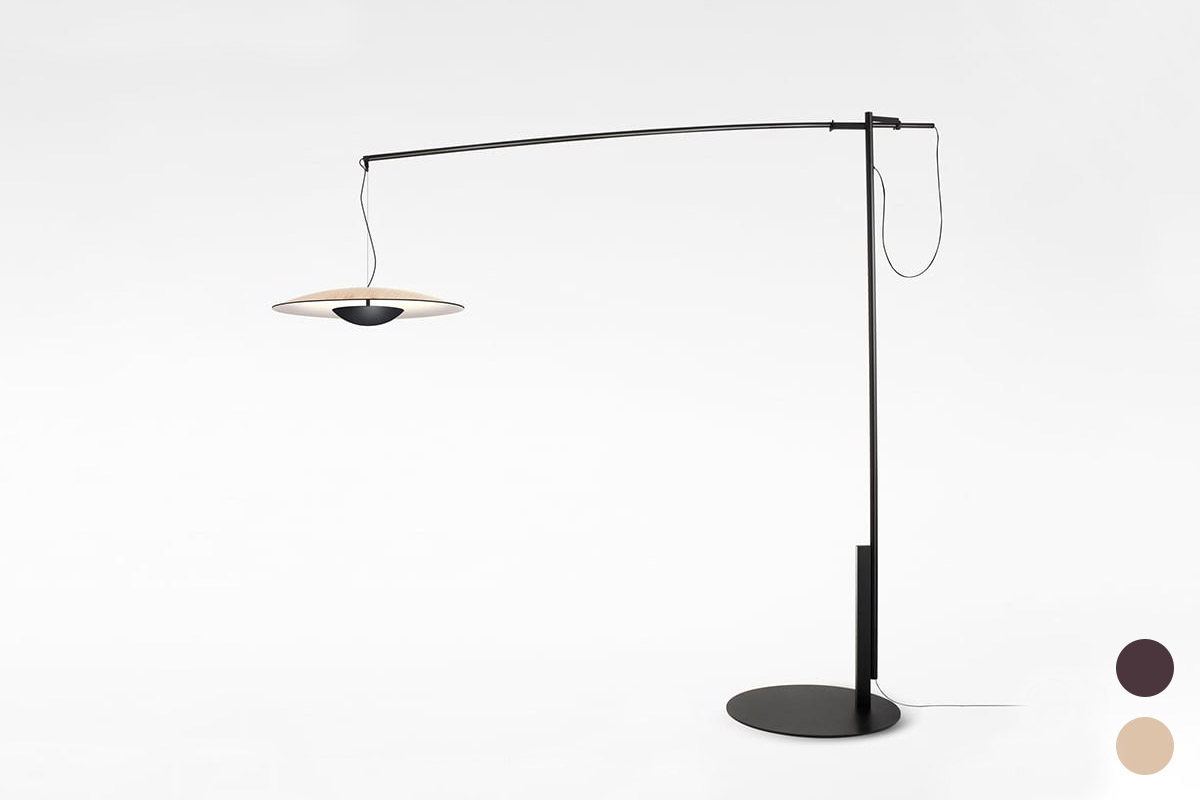 S svojo originalno orientacijo in sistemom obešanja senčnik te talne različice visi s konstrukcije, ki nadomešča strop. Steblo in sistem obešanja omogočata, da se senčnik razteza naprej in nazaj ter v obe smeri. Poleg tega je mogoče karbonsko roko nagibati na dva načina, odvisno od položaja. Ta različica talne svetilke Ginger je velika in vsestranska svetilka, ki ohranja lahkoten odtis in subtilno fizično prisotnost ter zagotavlja odlično osvetlitev, ne da bi preobremenila vaš prostor. Ta zasnova je na voljo v dveh velikostih za popolno prileganje ne glede na prostor.