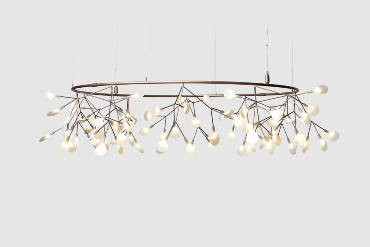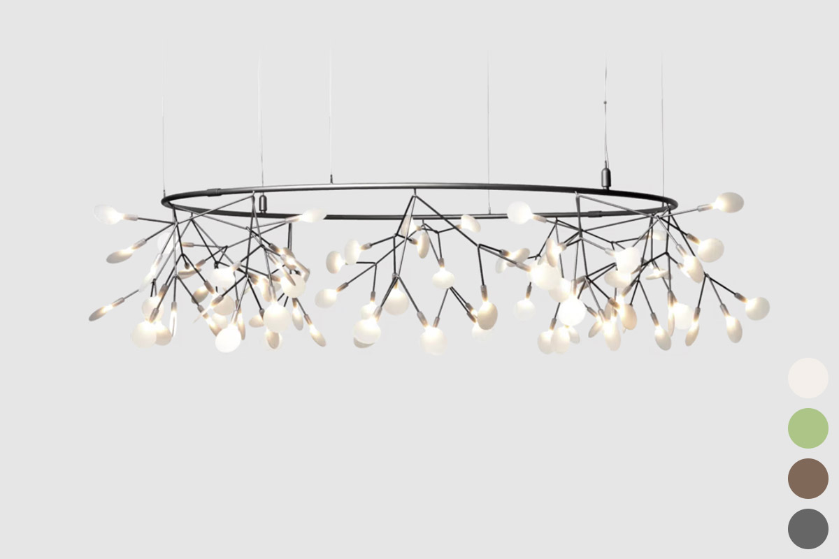 Svetilka The Big O, ki bo vaš prostor okronala z eleganco, se ponaša s sijočim, okroglim cvetom. Navdihnjena s kronami moči in večnosti, njene vitke veje in leče v obliki listov prinašajo lepoto narave v notranjost. Napaja jo Electrosandwich® studia Marcel Wanders, na voljo pa je v dveh velikostih, štirih barvah in deluje z brezžičnim stenskim stikalom.