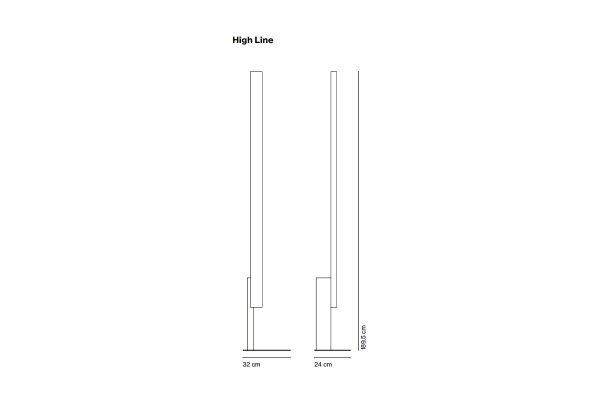Vizualno je High Line svetlobna skulptura, vitka linija, ki oddaja svetlobo, ne da bi razkrila svoj vir. Ta talna svetilka Josepa Lluísa Xuclàja ustvarja svetlobo posredno z odbojem, pri čemer se svetloba edinstveno ne odbija od stropa, temveč od stene. Njenega oblikovalca zanima, da stena vrne oddano svetlobo. Stena je največji zaveznik te svetilke in želi ostati blizu nje.