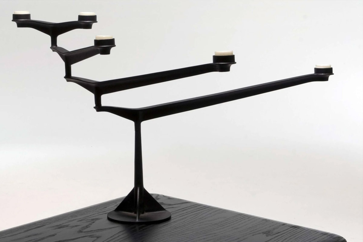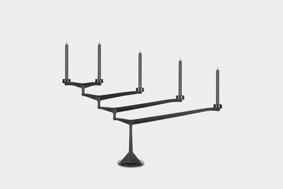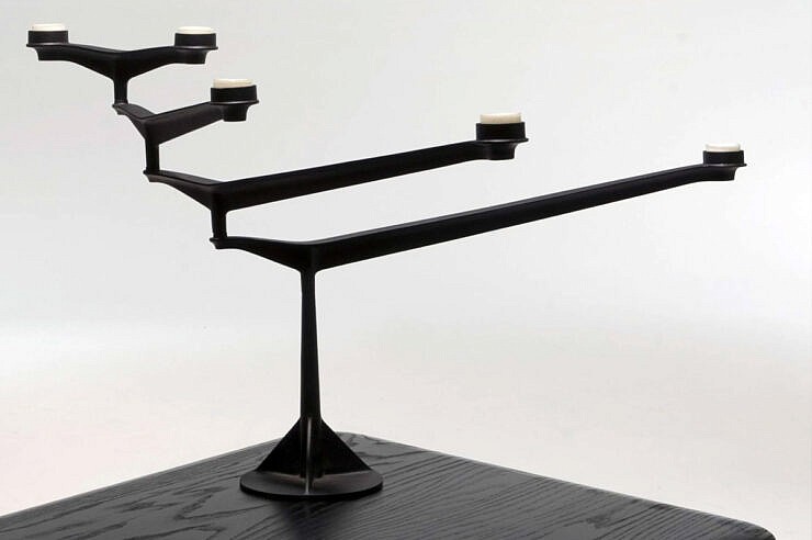 Svečnik Spin je kos dinamičnega inženiringa. Zasnovan kot kinetični osrednji element mize, Spin omogoča ustvarjanje neskončnih aranžmajev za razstavljanje sveč. Litoželezni svečnik, ki lahko z enako eleganco drži čajne svečke in stožčaste sveče, je bil navdihnjen s težkimi konzolnimi mehanizmi pristaniških žerjavov in mehansko eleganco mobilnih telefonov iz petdesetih let prejšnjega stoletja. Več o izdelku...