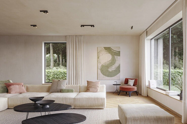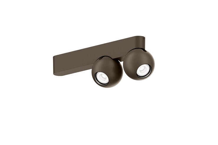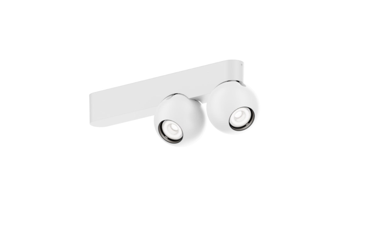 Stropna nadgradna svetilka z dvema reflektorjema; izdelana iz tlačno litega aluminija.