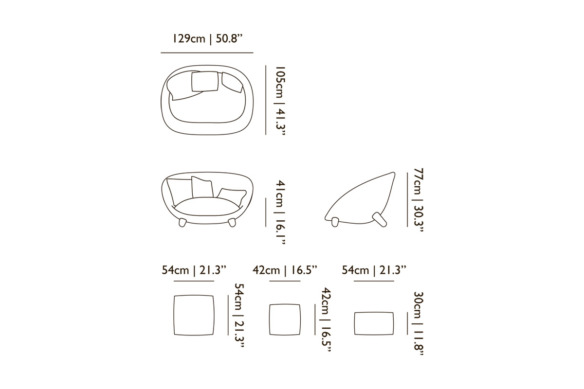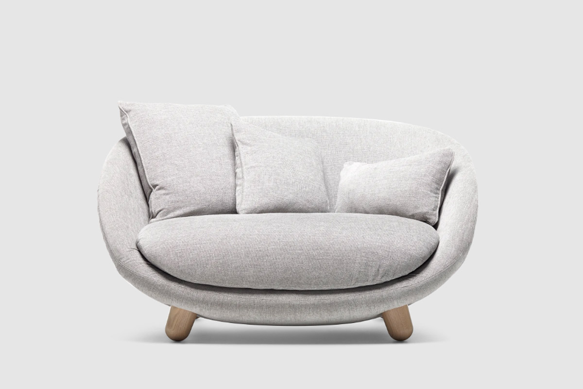 Sofa Love znamke Marcel Wanders združuje romantiko in vzdržljivost. Popolna je za intimne trenutke ali sproščanje z ljubljeno osebo, ima trden jeklen okvir in lesene noge za trdno oporo. Na voljo je v različici z zofo in visokim naslonjalom ter uteleša brezčasno ljubezen tako z zasnovo kot z izdelavo.