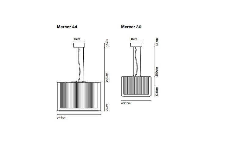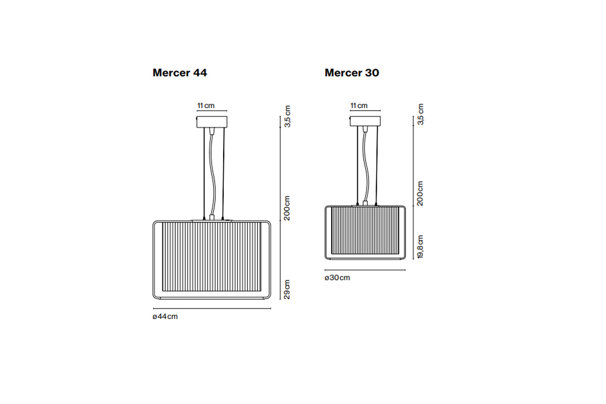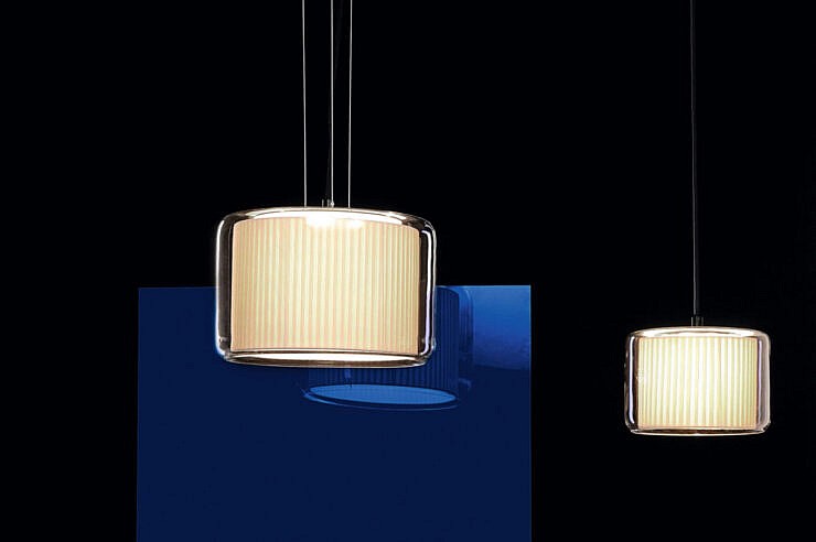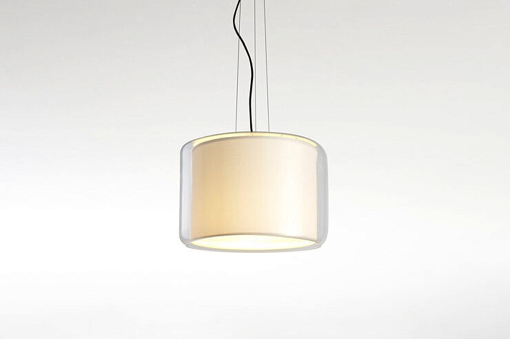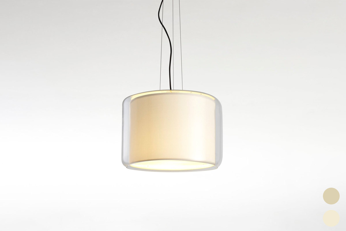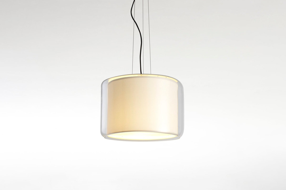 Lepota svetilke Mercer ne izvira le iz njene čiste oblike, temveč tudi iz načina, kako se materiali prepletajo. Prozorna pihana steklena struktura obdaja tekstilni senčnik, ki se zdi, kot da lebdi, in izraža lahkotnost in prefinjenost. Notranja tkanina difuzorja je na voljo v dveh izvedbah: z bombažnim trakom v ecru barvi in v bolj moderni in minimalistični različici v biserno beli barvi.