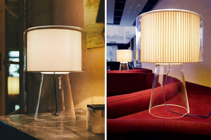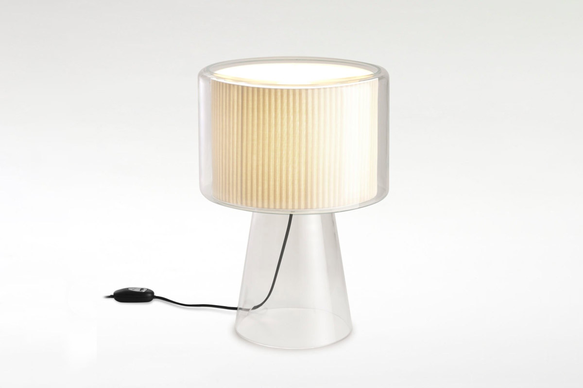 Lepota svetilke Mercer ne izvira le iz njene osnovne oblike, temveč tudi iz načina, kako se njeni materiali prepletajo. Prozorna pihana steklena struktura obdaja tekstilni senčnik, ki se zdi, kot da lebdi, in daje občutek zračnosti in prefinjenosti.