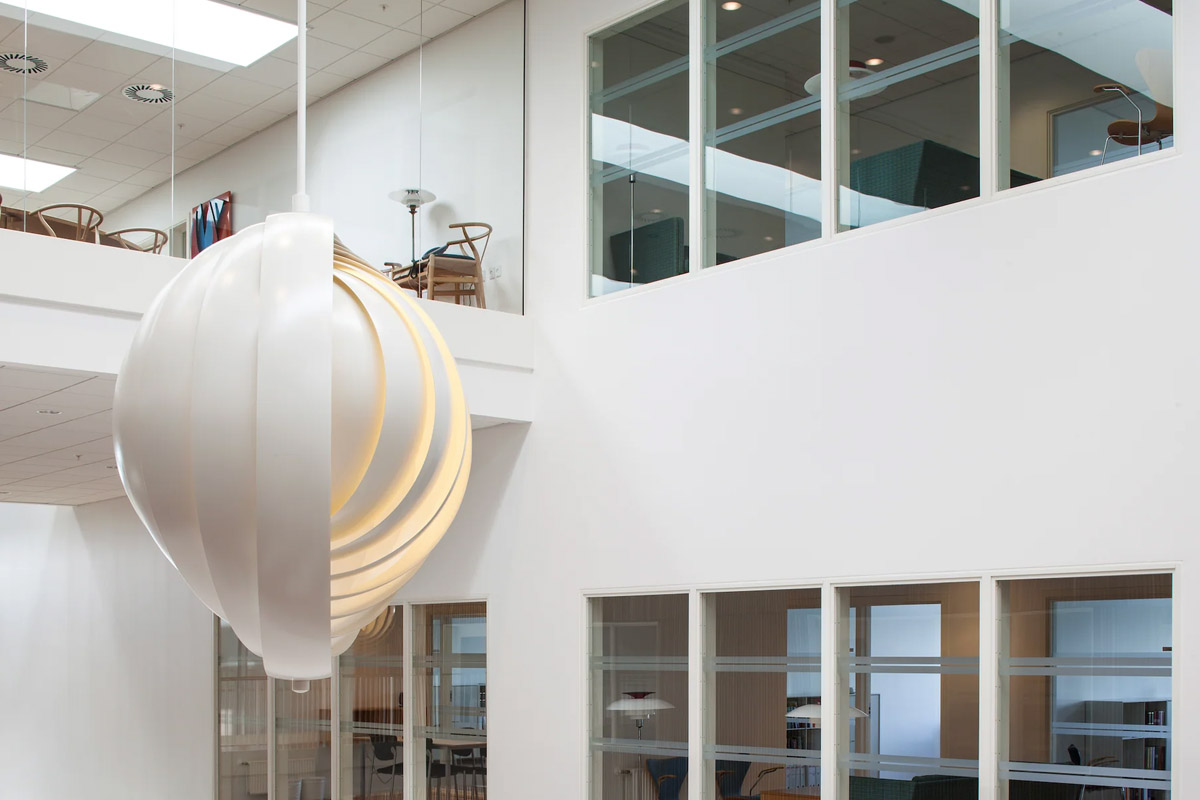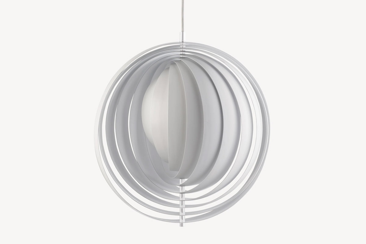 Luna, zasnovana leta 1960, predstavlja eno najzgodnejših Pantonovih oblikovalskih idej na področju razsvetljave. Ikonično obesno svetilko zaznamuje pahljačasta oblika z desetimi obročastimi lamelami, ki so popolnoma nameščene tako, da zagotavljajo mehko, ambientalno in bleščečo svetlobo. Lamele odbijajo in filtrirajo svetlobo, obesek pa spreminja svoj videz glede na kot gledanja.