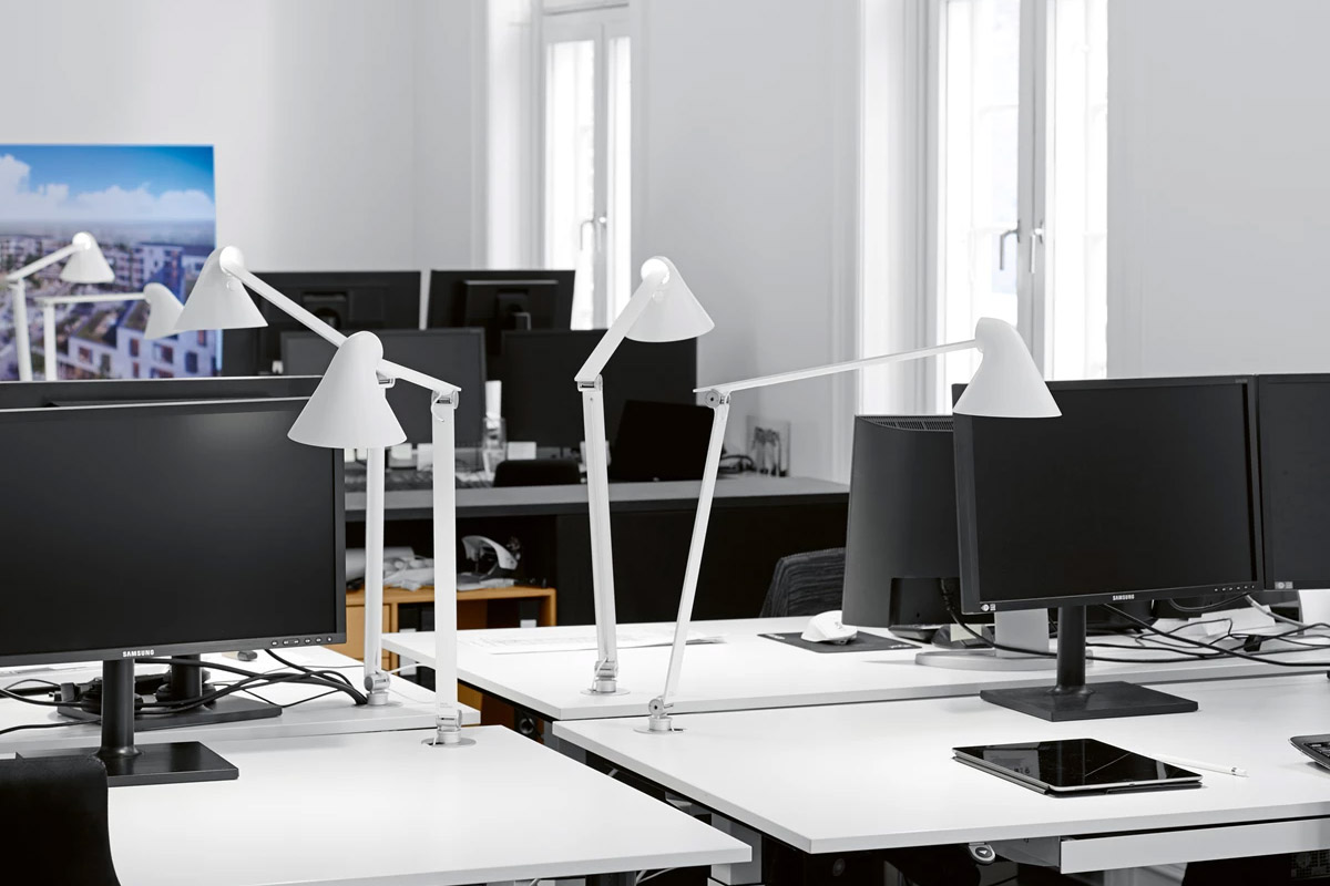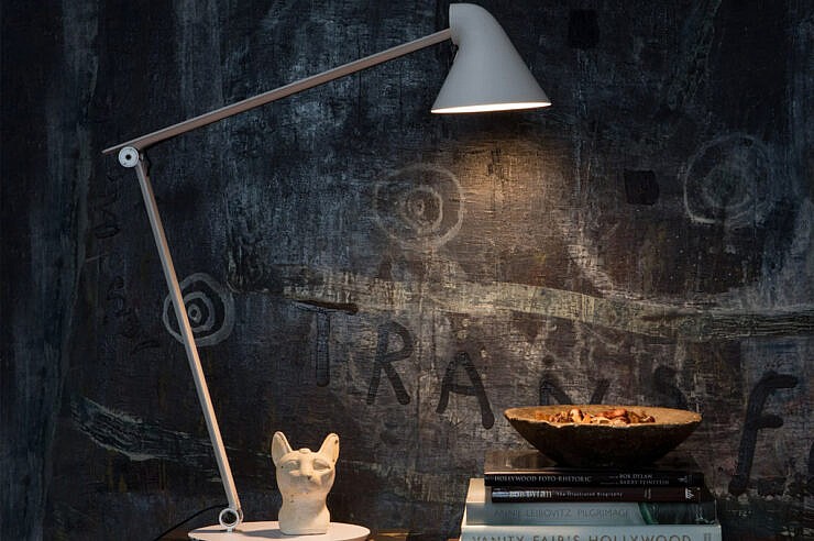Svetilko je zasnoval japonski oblikovalski studio Nendo in oblikovalec Oki Sato. NJP Table je nova interpretacija klasične arhitekturne svetilke. Njen preprost in iskren videz razkriva funkcionalne komponente svetilke ter jo naredi samoumevno v svojem izrazu. Uporaba svetilke je bila premišljena do najmanjših podrobnosti: dva spoja na roki zagotavljata veliko fleksibilnost, kar olajša nastavitev položaja svetilke. Kot dodaten detajl so vzmeti izpostavljene v spojih roke in prispevajo k dekorativnemu videzu svetilke. Na enak način zadnji senčnik, ki se odpira proti roki, omogoča brezstopenjsko nastavitev glave in prezračevanje LED enot.