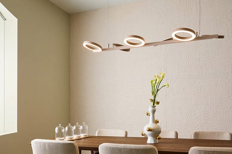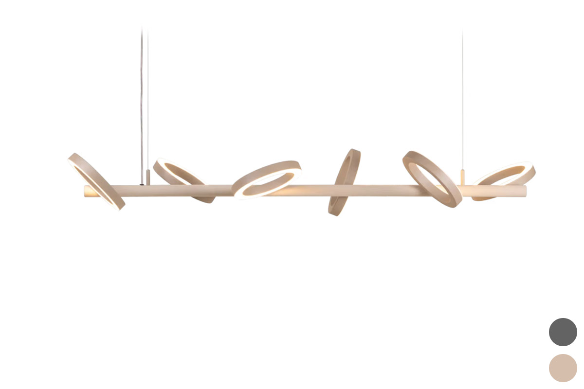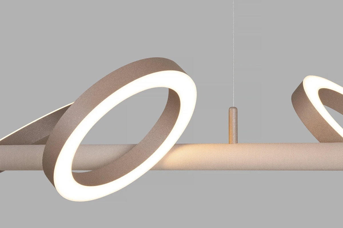 Praktično igrivo! Pallana Light podjetja IDEO je viseča svetilka, ki vas podpira pri vsakodnevnem življenju in vam pomaga pri iskanju ravnovesja. Mehansko združene klasične oblike Pallana ustvarjajo dinamičen in prilagodljiv dizajn, zaradi česar je to igriva delovna svetilka. Zavrtite obročaste luči, da si pomagate pri delu, prehranjevanju, kuhanju, pomoči otrokom pri domači nalogi ali kateri koli drugi priložnosti. Pallana Light je na voljo v dveh umirjenih barvah, ki se ujemajo z vsakim notranjim slogom in barvno paleto.