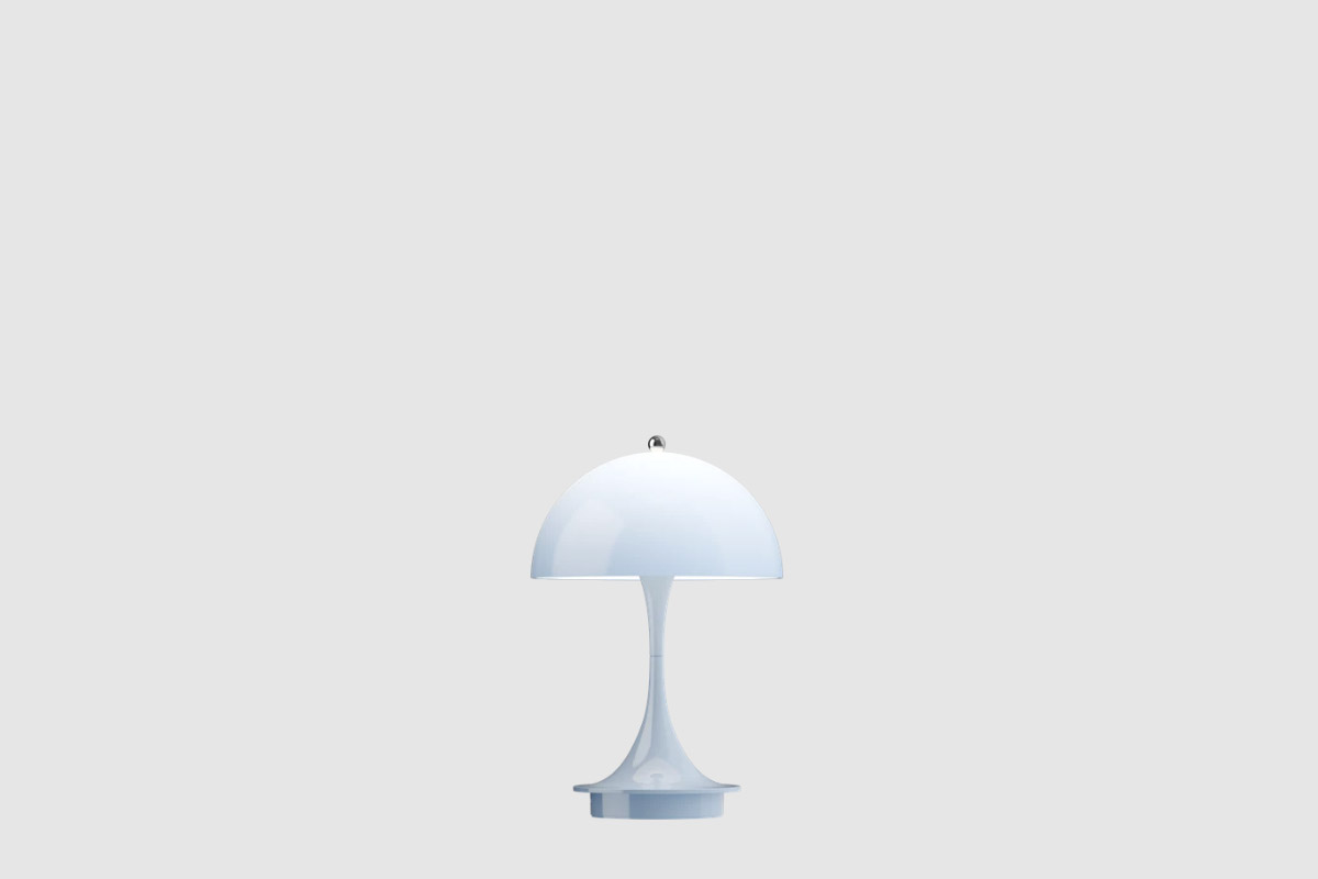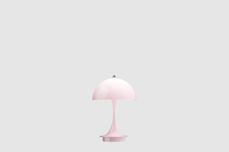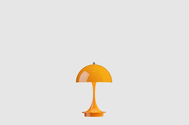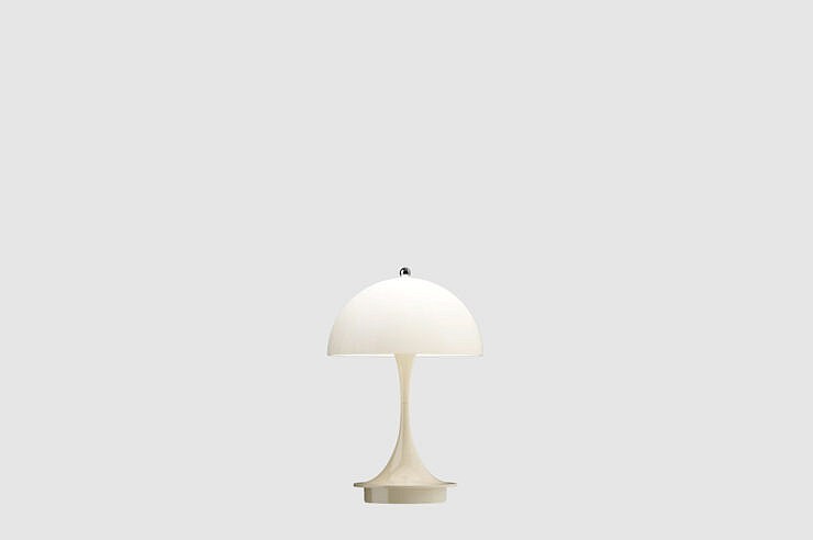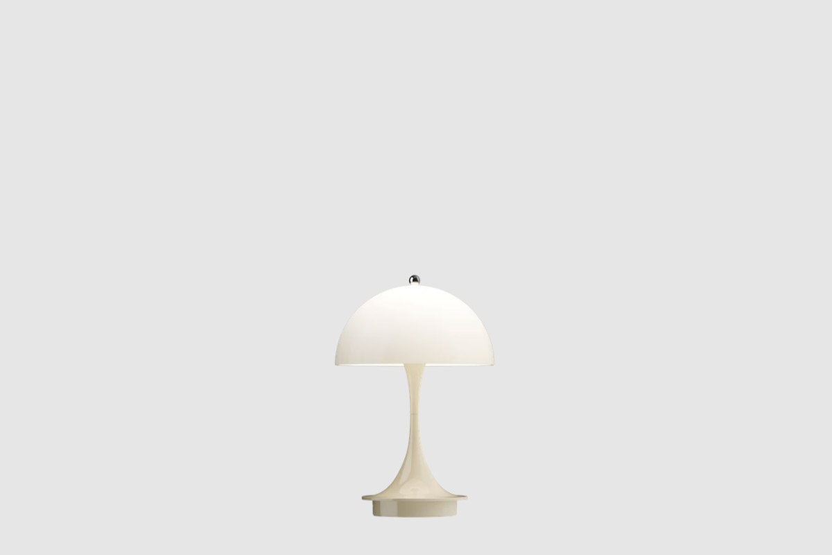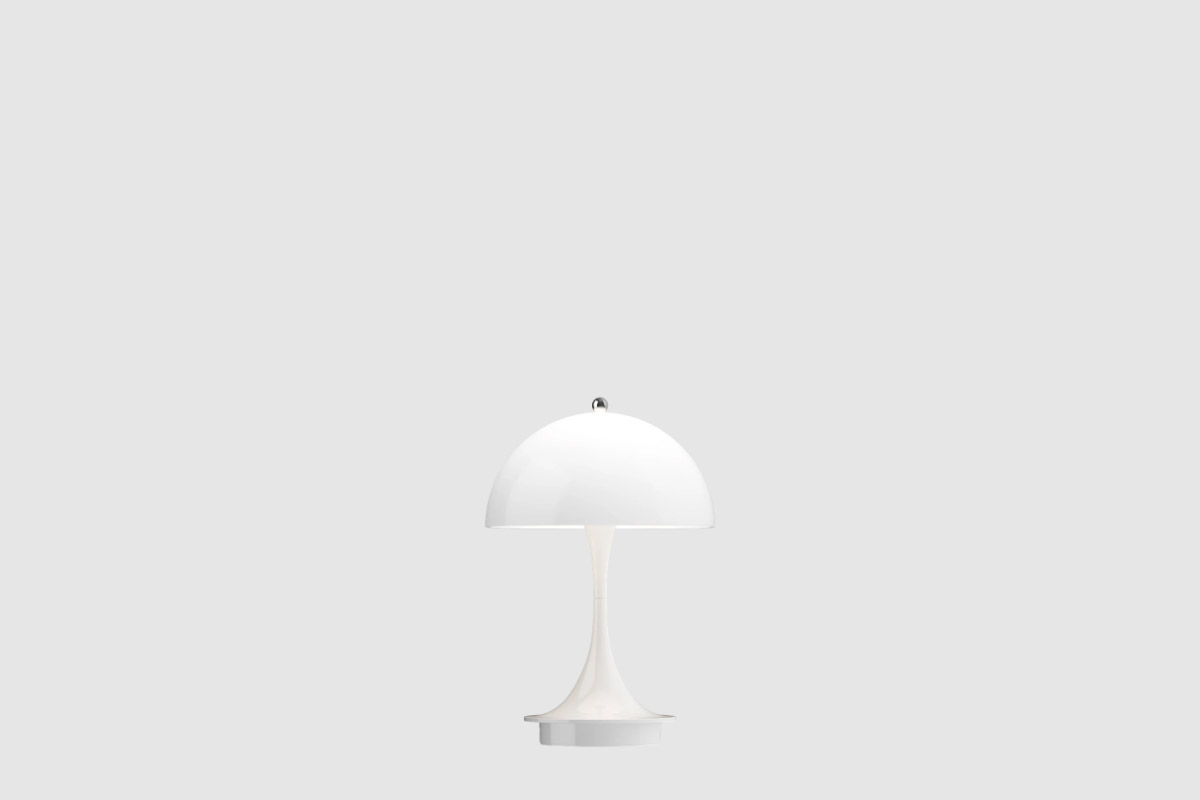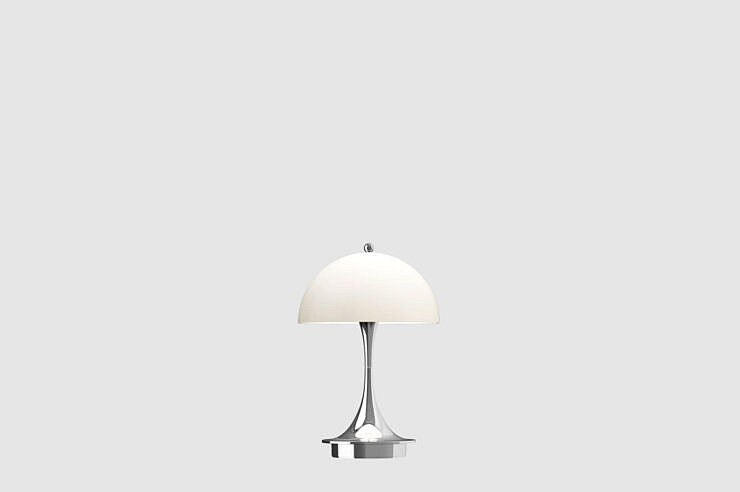 Zasnova svetilke Panthella je ena najpomembnejših zasnov Vernerja Pantona, ki odraža dansko arhitektovo izjemno osebnost. Njegov cilj je bil ustvariti svetilko organske oblike, ki zagotavlja 100 % svetlobo brez bleščanja, pri čemer tako stojalo kot senčnik služita kot reflektorja svetlobe. Pantonu je to uspelo, ko je leta 1971 skupaj z Louisom Poulsenom izdelal svetilko Panthella. Značilna oblika svetilke in sposobnost odbijanja mehke svetlobe iz njenega trobentasto oblikovanega podnožja sta utrdili njen status ikone oblikovanja. Prenosna svetilka Panthella 160 je pomanjšana različica originalne zasnove. Svetilka ima premer le 160 mm, zaradi česar je idealne velikosti za prenašanje iz sobe v sobo ali zunaj na balkonu ali na vrtu, kjer bo videti neverjetno in ustvarila čudovito vzdušje.