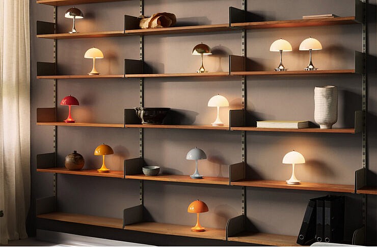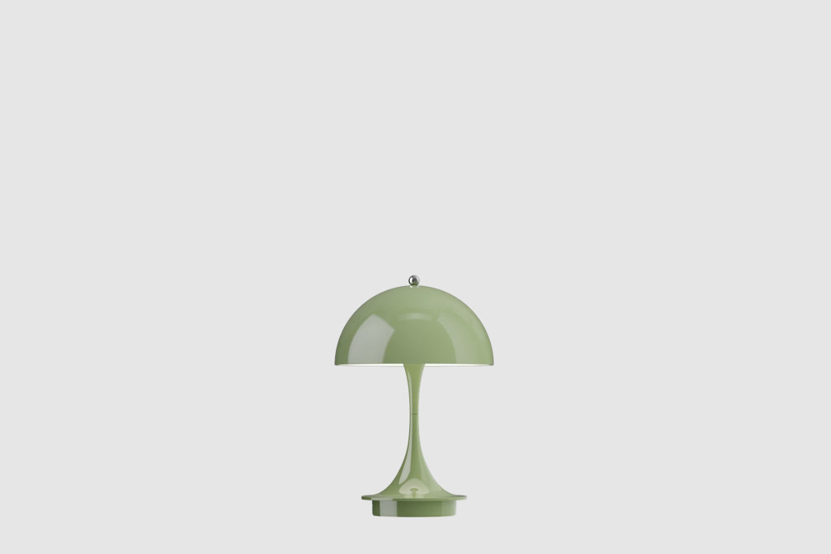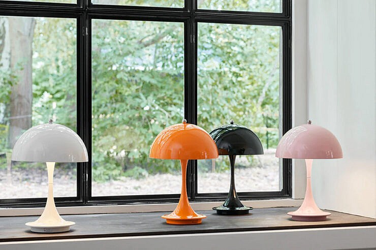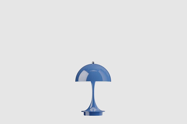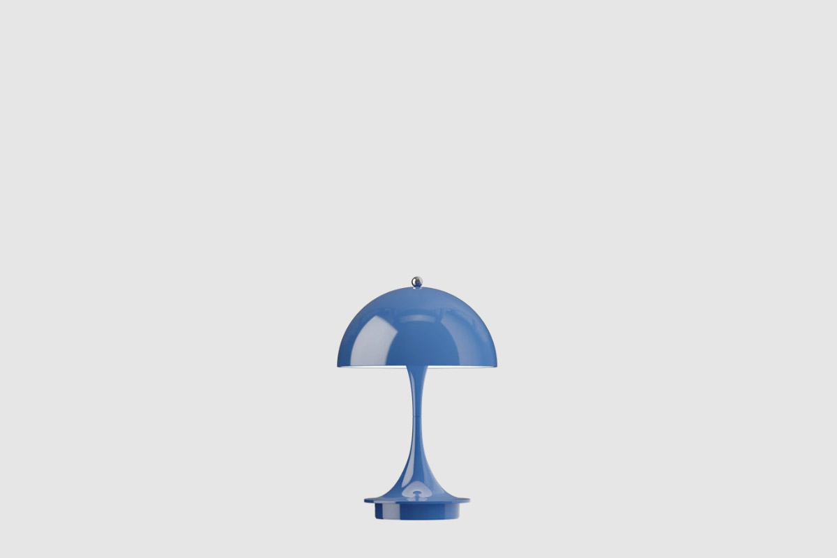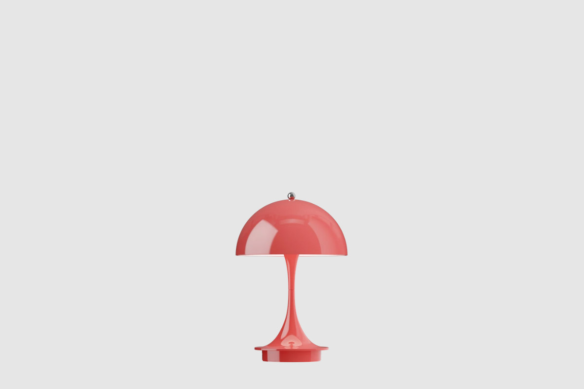 Zasnova svetilke Panthella je ena najpomembnejših zasnov Vernerja Pantona, ki odraža dansko arhitektovo izjemno osebnost. Njegov cilj je bil ustvariti svetilko organske oblike, ki zagotavlja 100 % svetlobo brez bleščanja, pri čemer tako stojalo kot senčnik služita kot reflektorja svetlobe. Pantonu je to uspelo, ko je leta 1971 skupaj z Louisom Poulsenom izdelal svetilko Panthella. Značilna oblika svetilke in sposobnost odbijanja mehke svetlobe iz njenega trobentasto oblikovanega podnožja sta utrdili njen status ikone oblikovanja. Prenosna svetilka Panthella 160 je pomanjšana različica originalne zasnove. Svetilka ima premer le 160 mm, zaradi česar je idealne velikosti za prenašanje iz sobe v sobo ali zunaj na balkonu ali na vrtu, kjer bo videti neverjetno in ustvarila čudovito vzdušje.