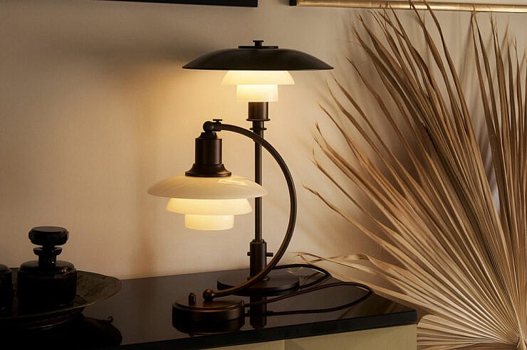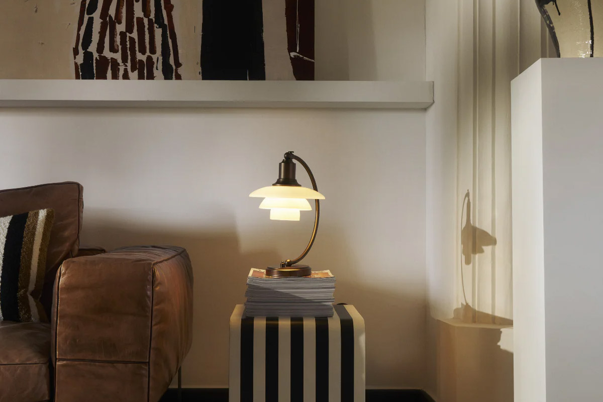 Kot nakazuje že njeno poetično nočno ime, je bila svetilka PH 2/2 Luna, ko je prvič zagledala luč sveta konec tridesetih let prejšnjega stoletja, znana kot »nočna svetilka«. Ni le odlična bralna svetilka, ampak PH 2/2 Luna oddaja tudi mehko, pomirjujoče vzdušje, idealno za konec dneva, tako kot si je zamislil Poul Henningsen. Namizna svetilka, uokvirjena v lakirano starano medenino, bo ohranila svoj edinstven videz in značaj. V kombinaciji z značilno ukrivljenostjo stebla namizna svetilka PH 2/2 Luna iz starane medenine z opalnim vzorcem zagotavlja prepoznaven izraz, ki s svojo diskretno eleganco poudari tako sodobne kot klasične prostore. PH 2/2 Luna ima enak čudovit učinek, ne glede na to, ali je postavljena na okensko polico, knjižno polico ali restavracijsko mizo. Ustvari popolno osvetlitev in razkošno vzdušje.