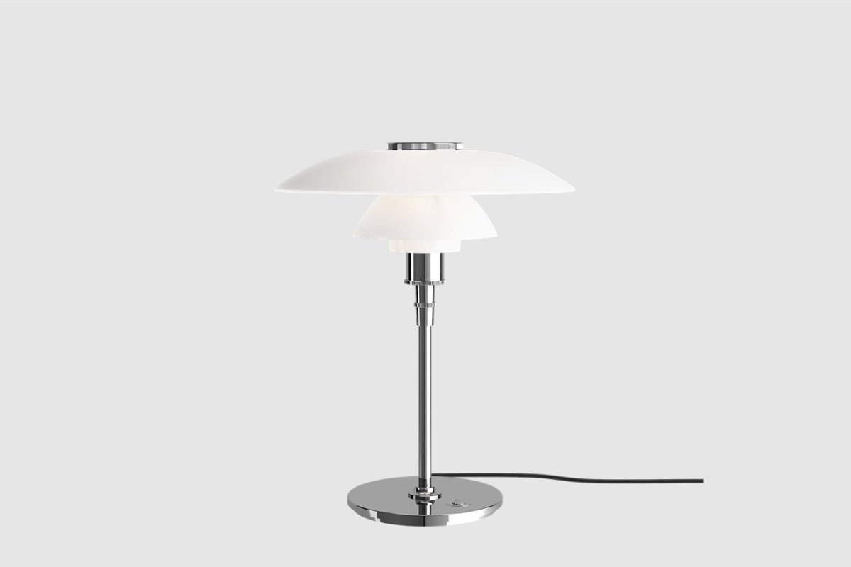 Poul Henningsen je bil prvi, ki je sledil znanstvenemu pristopu k svetlobi in kot osnovo uporabil logaritemsko spiralo. Z uporabo zasnove, ki temelji na logaritemski spirali, je dosegel enakomerno porazdelitev svetlobe po celotni krivulji senčila. Ta enakomerna porazdelitev svetlobe je skupaj z difuznim odbojem skozi steklo omogočila nadzor nad bleščanjem in senco. Vsako senčilo enakomerno zmanjša količino svetlobe zaradi svoje oddaljenosti od vira svetlobe. Številke modelov luči PH se nanašajo na velikost senčila. Vsako zgornje senčilo je imelo ustrezen niz srednjih in spodnjih senčil. Pri »čistih« modelih, kot je 2/2, ima zgornje senčilo velikost približno 20 cm, z ustreznimi spodnjimi senčili. Steklena miza PH 4½-3½ je sestavljena iz približno 45 cm dolgega zgornjega senčila, vendar uporablja spodnja senčila iz modela 3½. Ti »hibridni« modeli so bili uvedeni zaradi želje po obešanju visečih lučk na nižje višine. Sistem se je uporabljal tudi za stenske, namizne in talne svetilke. Steklena miza PH 4½-3½ v sedanji obliki je bila predstavljena leta 1990.