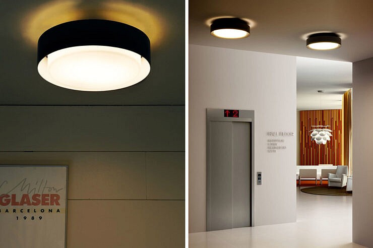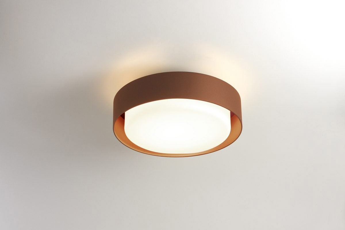 Plaff-on! kolekcija je na voljo v treh velikostih — 316, 33 in 50 cm v premeru — s črnimi in rjasto rjavimi zaključki. Kot pri standardnem Plaff-on!, se zdi, da difuzor iz pihanega stekla zunanjih različic lebdi, ločen od aluminijastega obroča, ki ga obdaja. Njegova svetloba se filtrira navzdol in navzgor v svetlečem obroču, ki izžareva preprostost in uporabnost.