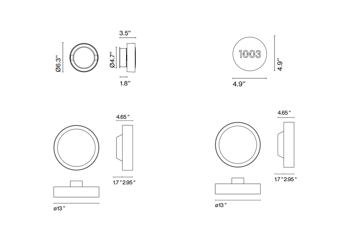 Ta zelo funkcionalna kolekcija je na voljo v treh velikostih – 6″, 13″ in 20″ – z mat črno površino in ima IP stopnjo zaščite. Njeni senčniki so hermetični in vodoodporni ter so zasnovani za osvetlitev katerega koli notranjega ali zunanjega prostora, vključno s kopalnicami.