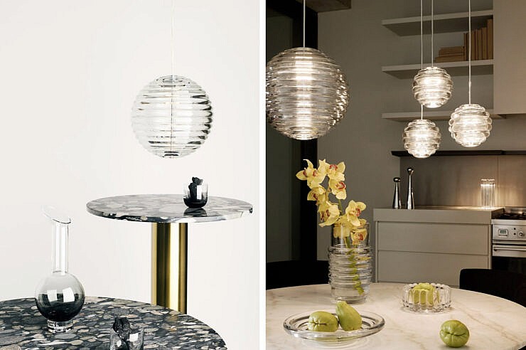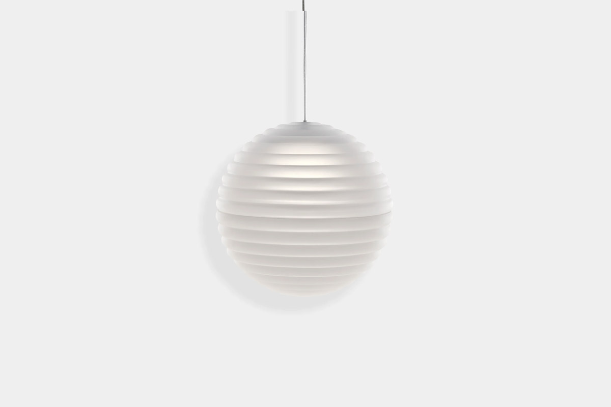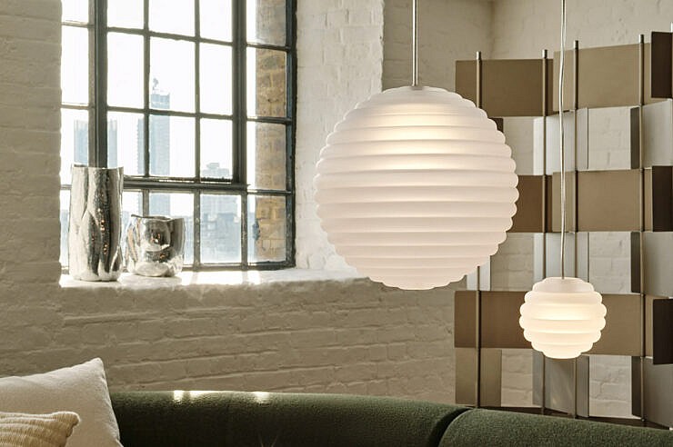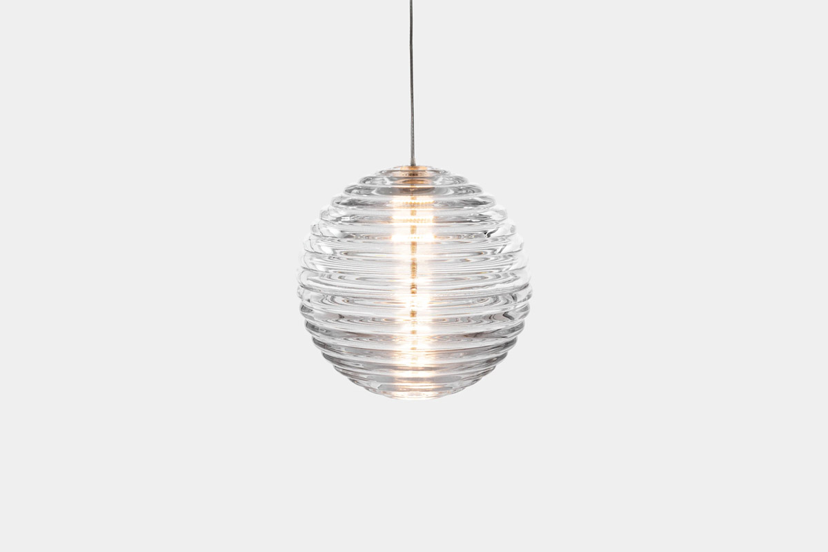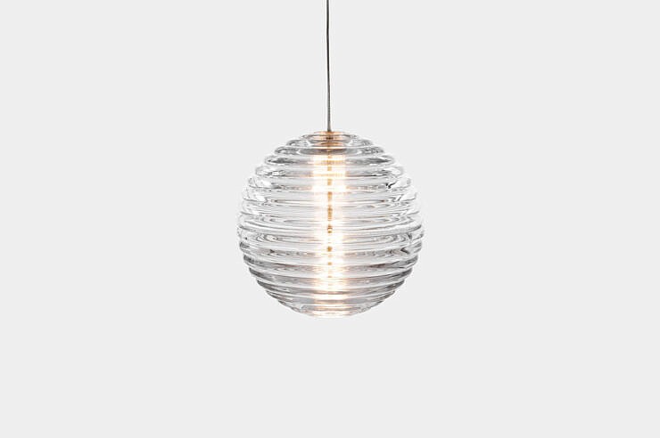 Viseča svetilka PRESS Frosted Sphere, ki jo je v Londonu zasnoval Tom Dixon, je navdihnjena z ladijskimi bojami in ima zadovoljivo zaobljeno linearno površino. PRESS je izdelana iz debelega stekla s peskano matirano površino, ki prozorno steklo spremeni v prosojno mat teksturo. Ta učinek oddaja mehko, žarečo in toplo svetlobo. Zasnovano je tako, da se lahko obesi v več svetilkah ali pa je enako osupljivo samostojno, standardno pa je opremljena s toplim LED obročem z 2700k, zamenljivi svetlobni viri pa podaljšujejo življenjsko dobo izdelka.