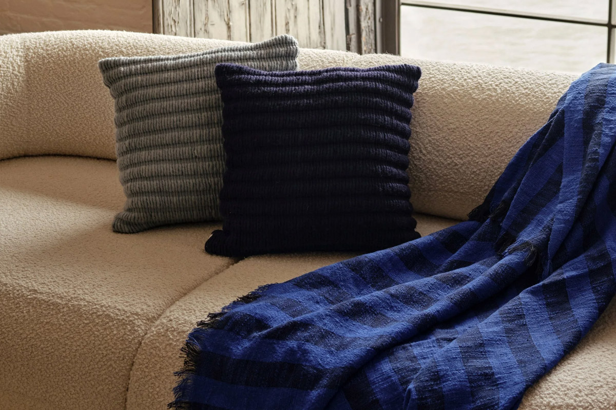 Blazine RIDGE dajejo igriv pridih s super teksturo svojih vrst, podobnih korduroju. Vsaka blazina je izdelana iz volne in bombaža, ročno pa so jo stkali spretni obrtniki, kar ustvarja nekaj resnično edinstvenega. RIDGE je idealen dodatek k vsakemu kavču ali naslanjaču.
