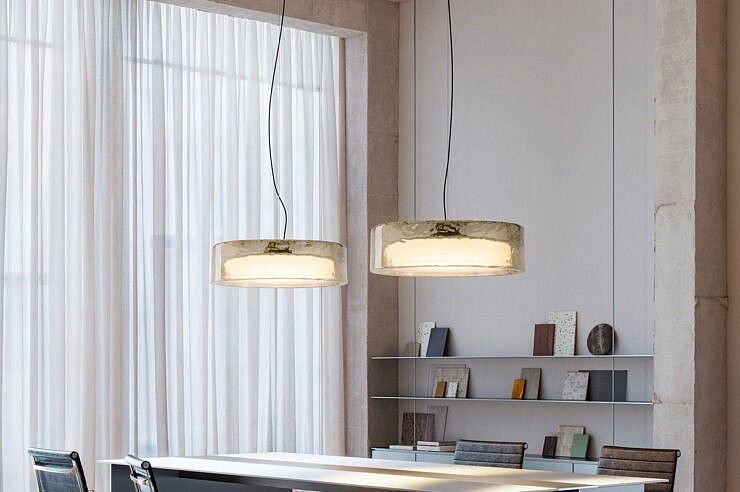 Predvsem je kolekcija Ringo pogumna zasnova: velika viseča ali stropna svetilka, ki poudarja material in ne obliko. V bistvu gre za osnovno geometrijsko obliko, vendar je njen material osupljiv, saj spominja na ledeni blok, hkrati pa je trden in breztežen. Njen oblikovalec Joan Gaspar je uporabil prozoren polikarbonat za ustvarjanje optičnih odsevov, kar daje vtis organske zasnove iz stekla.