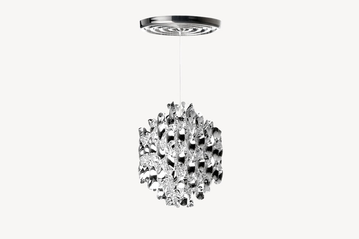 Spiral SP1 Silver je velika viseča stropna svetilka z eno samo skupino srebrnih spiral.