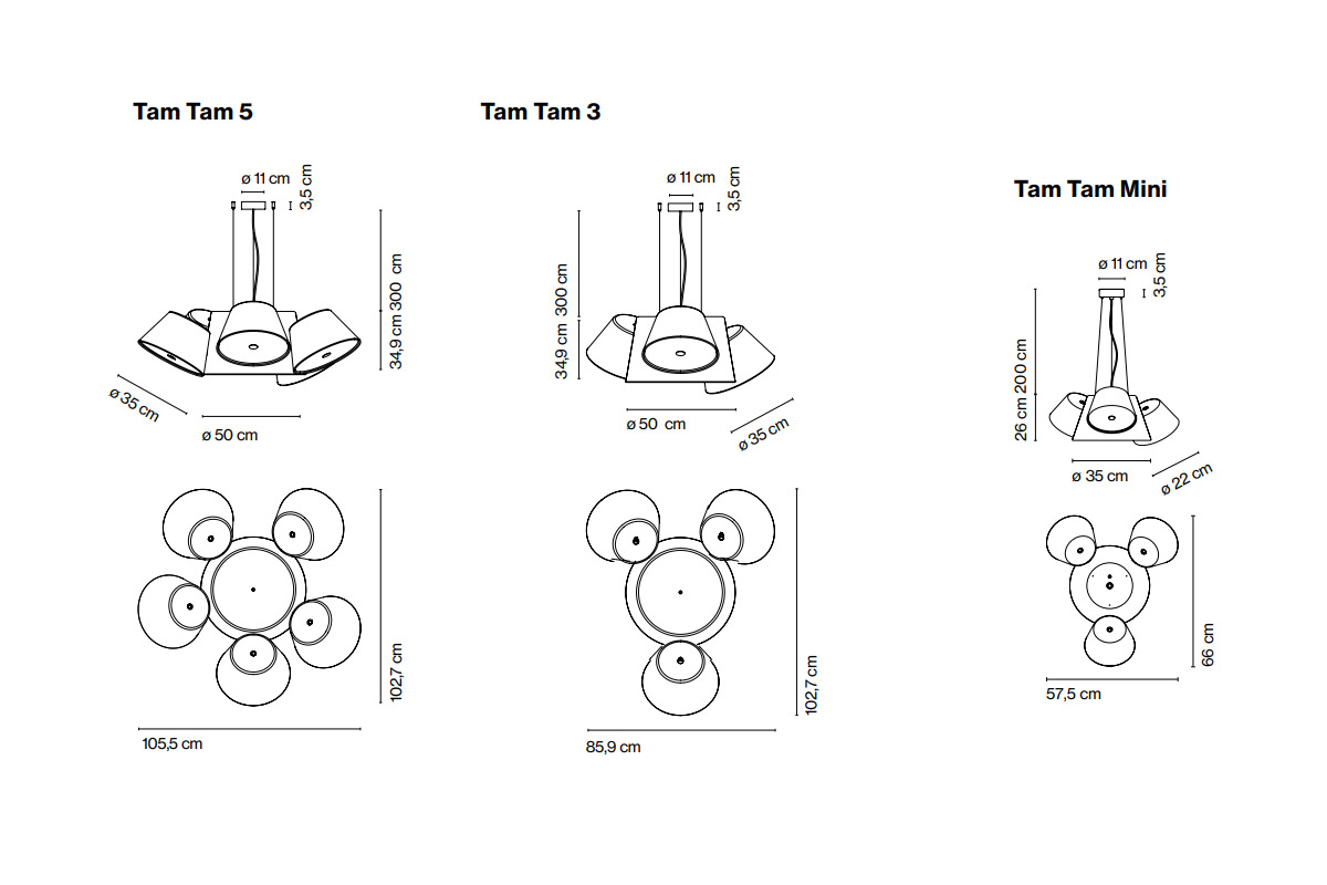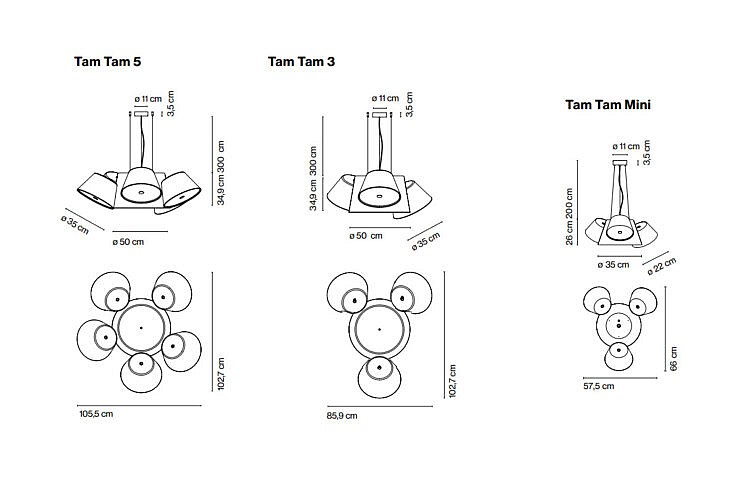 S kolekcijo Tam Tam nam Fabien Dumas pokaže svoj talent za inovacije: združuje različne svetilke v eni in omogoča, da vsaka od njih oddaja svetlobo v katero koli smer. Zasnova ima osrednji vir svetlobe, ki mu je mogoče dodati različne satelitske svetilke – od 3 do 5 – za projiciranje svetlobe iz katerega koli kota.