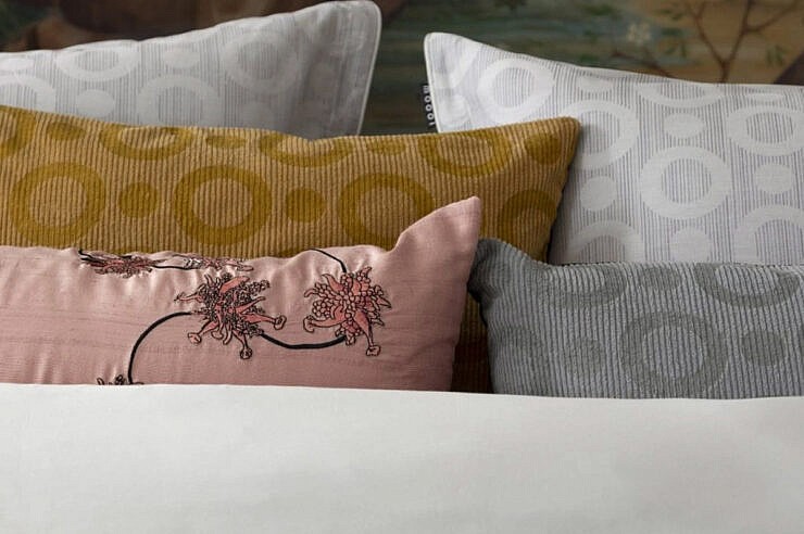 Blazine za posteljo Umbrella Squid so del Moooijeve kolekcije posteljnine Extinct Animals. Subtilna žakard tkanina na blazinah za posteljo upodablja čarobno kožo lignja Umbrella, ki je bila prekrita s svetlečimi dragulji, ki so spreminjali barvo. Svetloba in senca sta se elegantno izmenjevali v čarobnem podvodnem svetu gibanja in barv. Hrbtna stran je pobarvana v enobarvni barvi. Blazine za posteljo Umbrella Squid so izdelane iz 100 % bombažnega satena za dodatno mehak in gladek občutek.